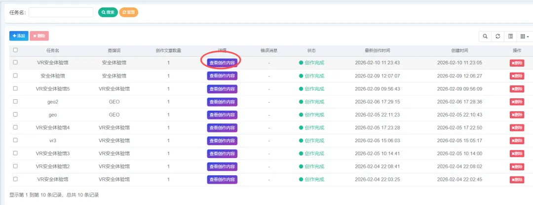 4.3 创作完成后,点击查看创作内容;