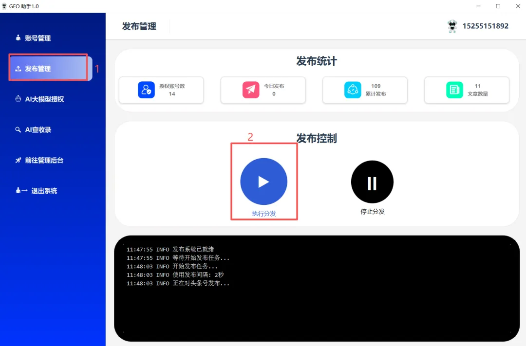在GEO加速器.EXE中,点击发布管理,点击执行分发。