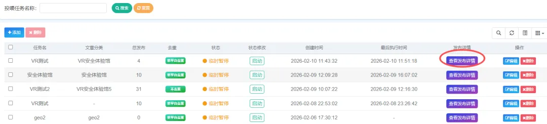 发布结束后,在投喂任务中,可以查看发布详情。