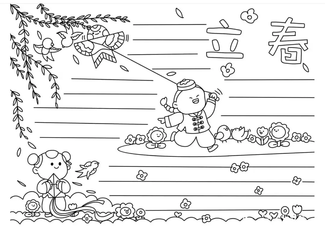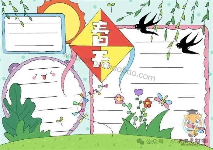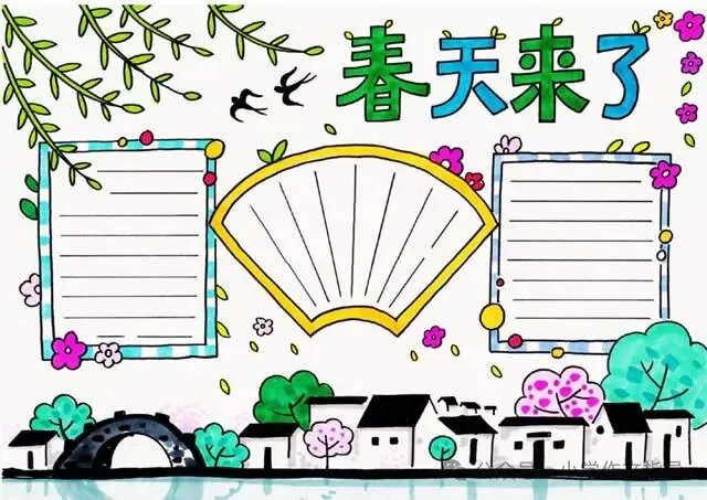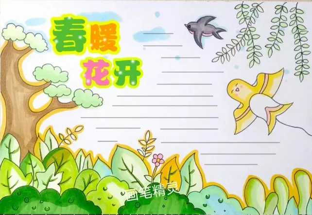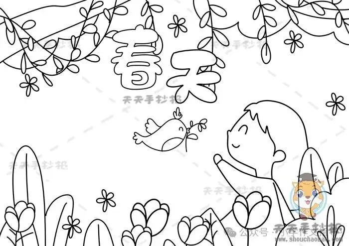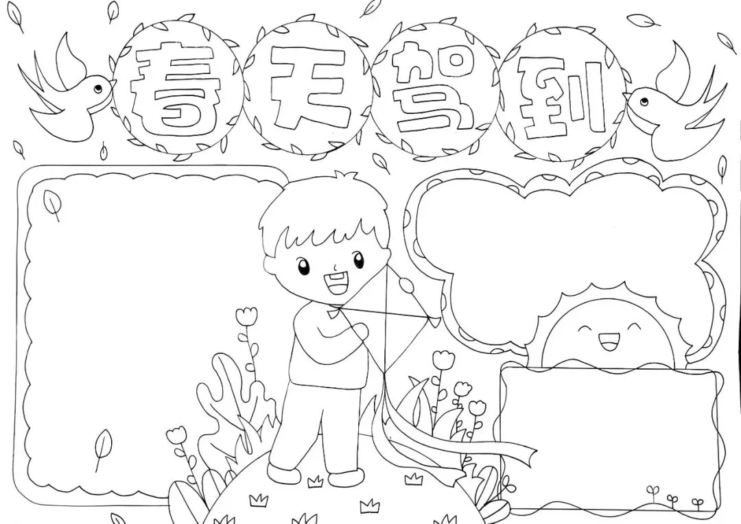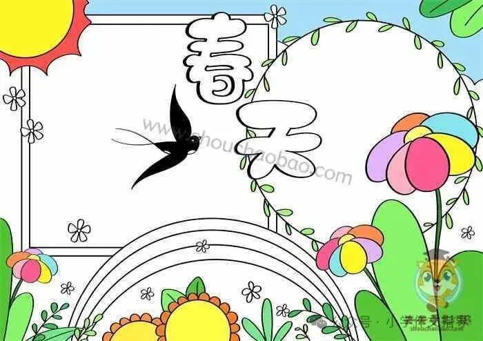 精选春天主题手抄报,彩绘、线搞均可打印!