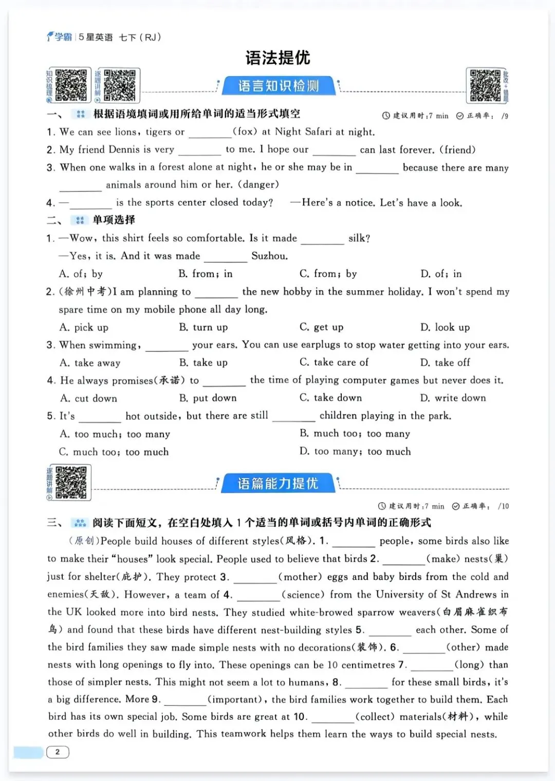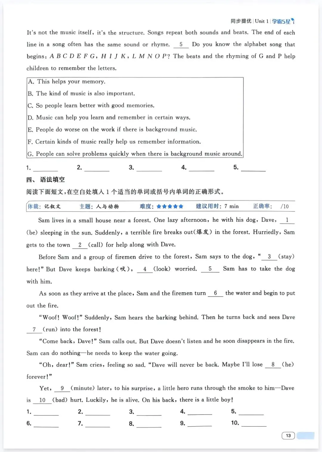 七年级下册英语第一单元练习题可打印