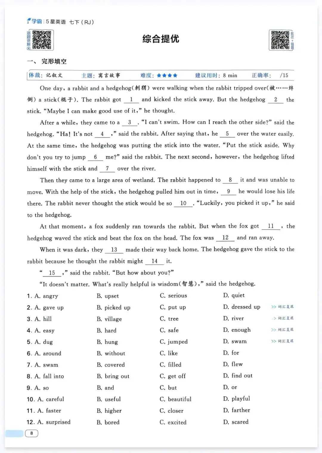 一年级语文下册晨读单(5-8单元)可打印
