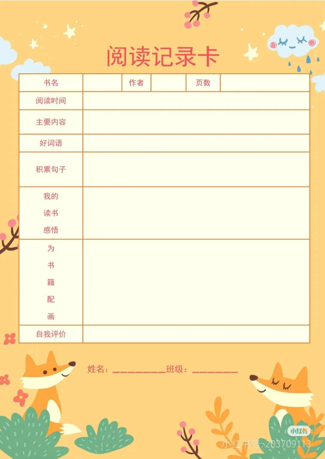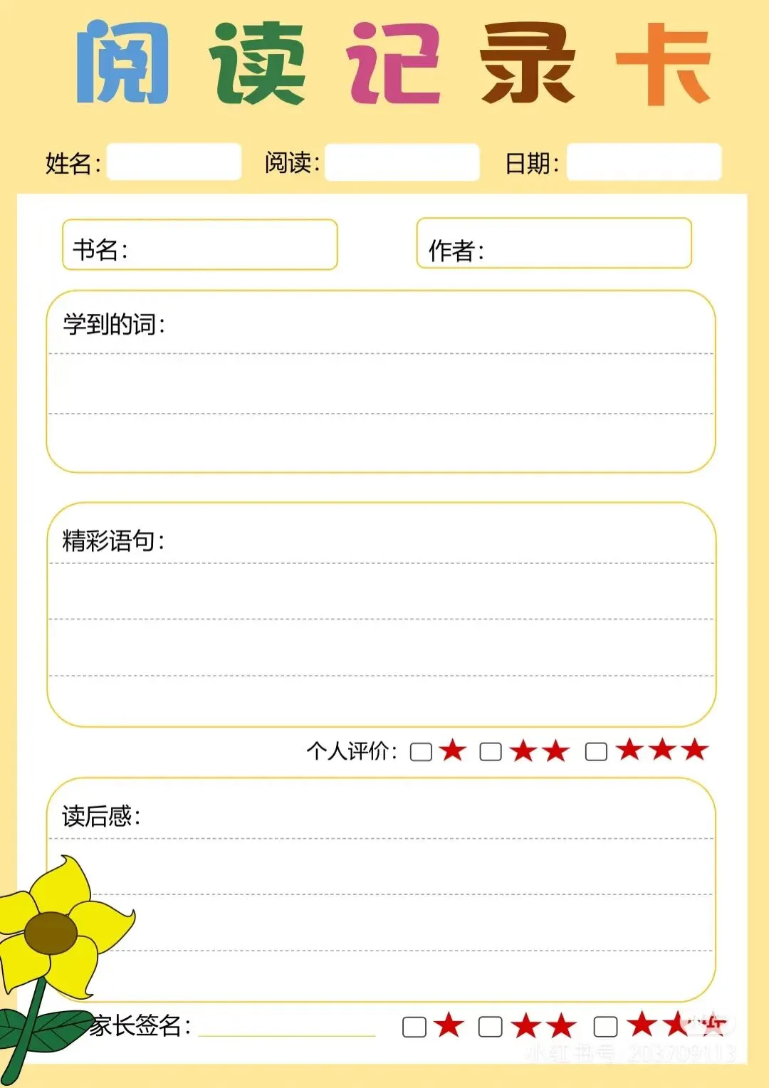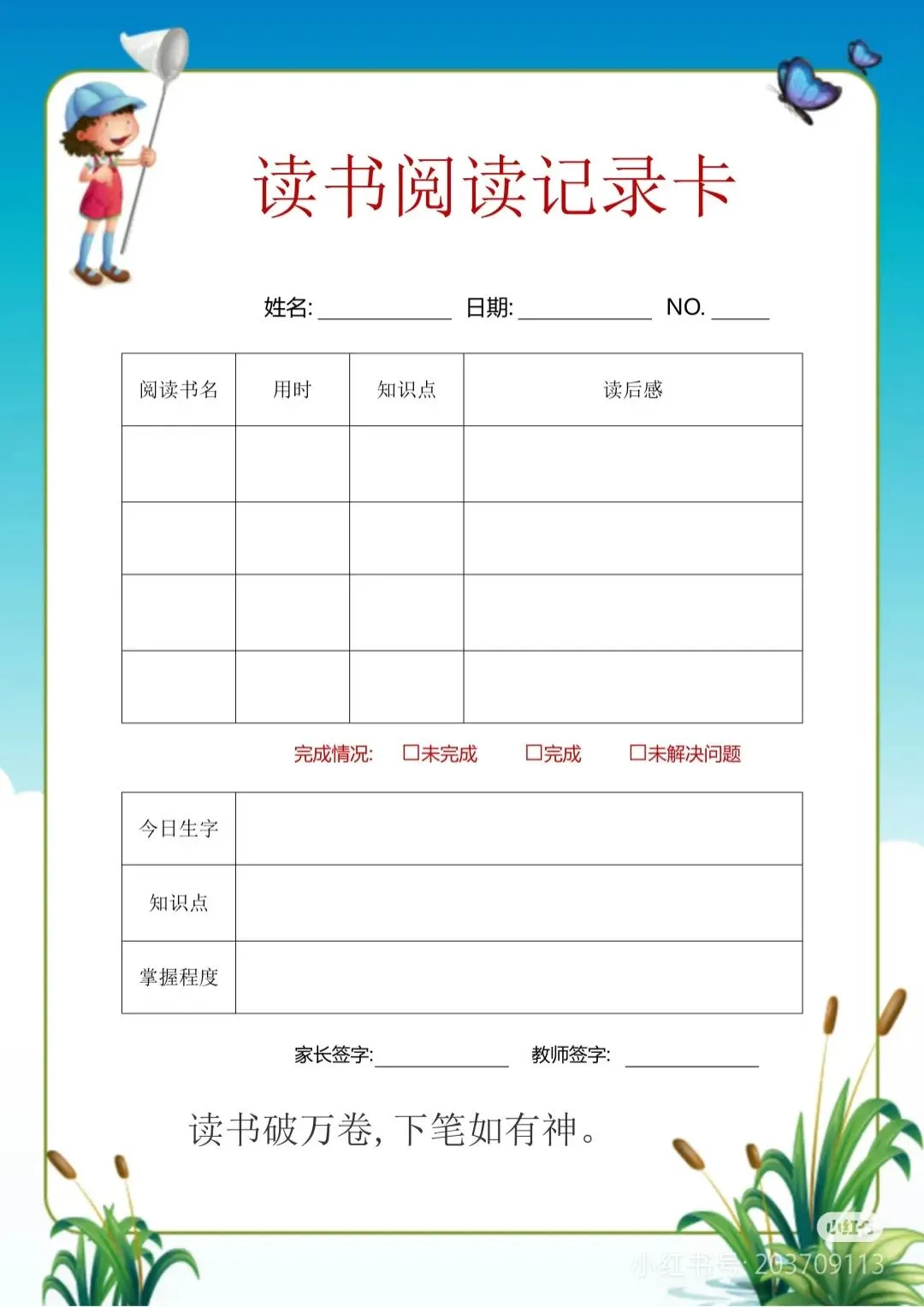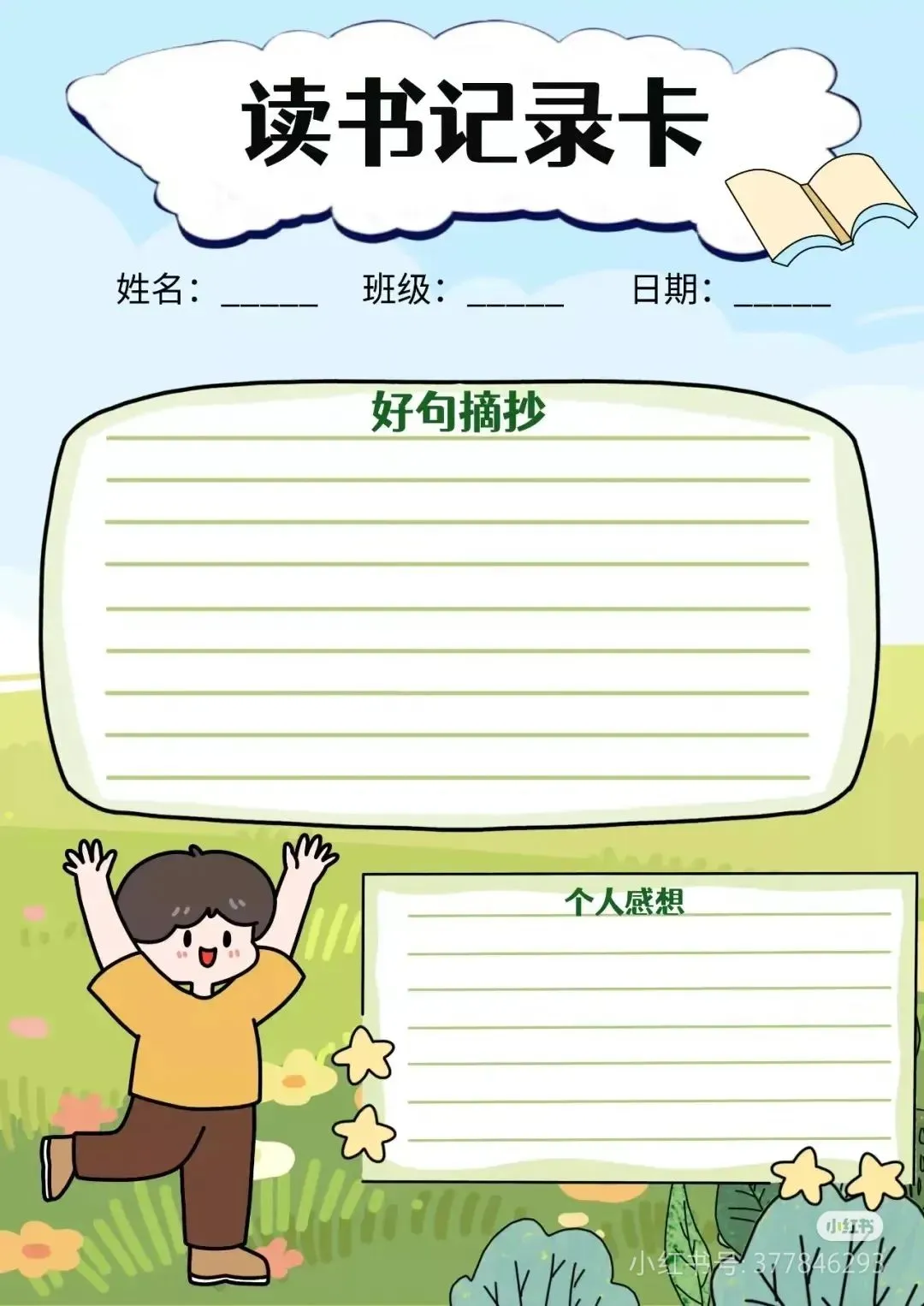 阅读记录卡,读书笔记模板可打印