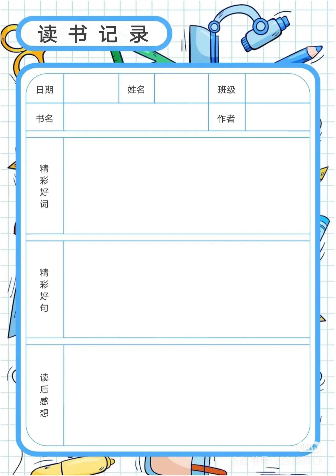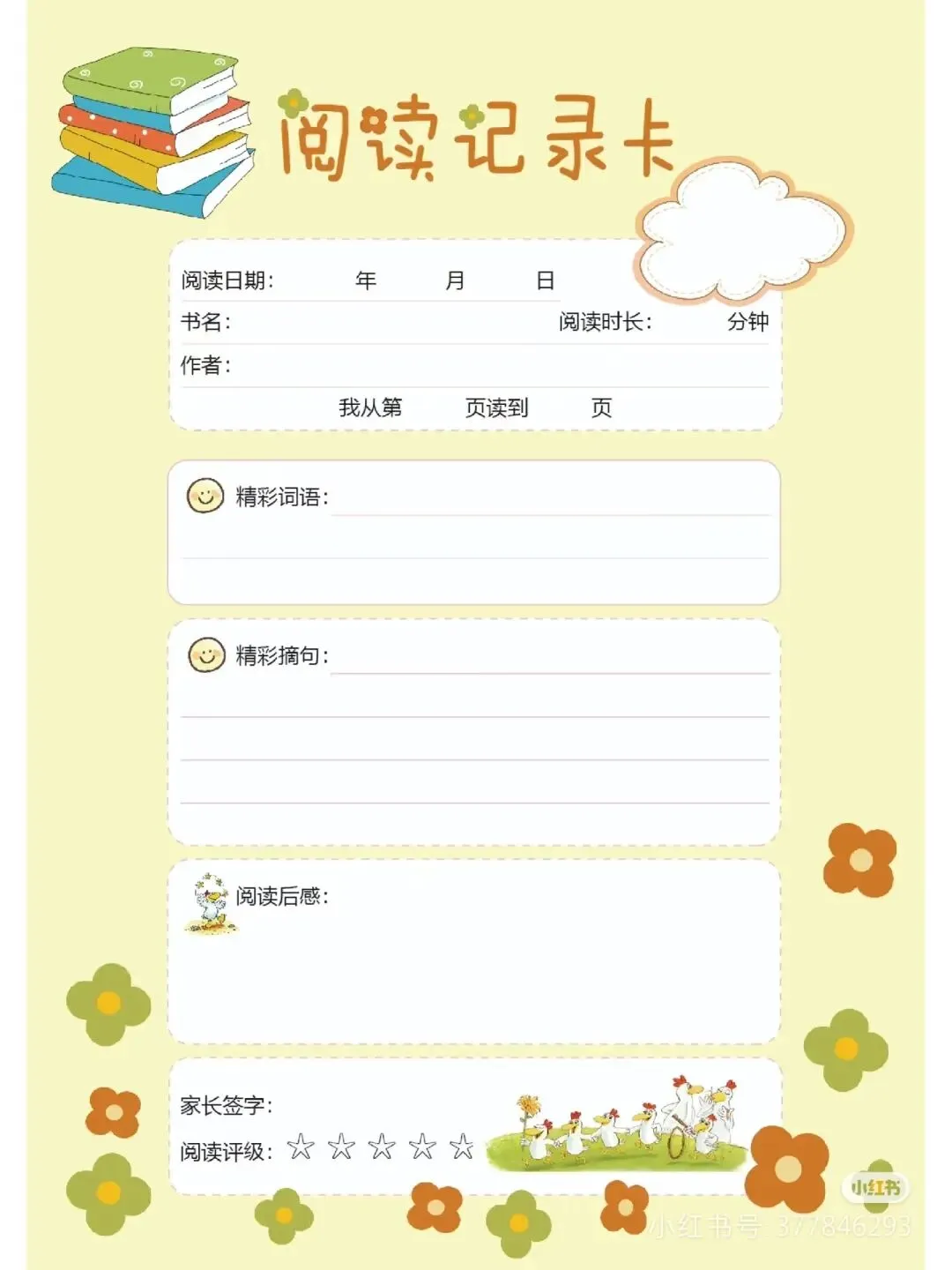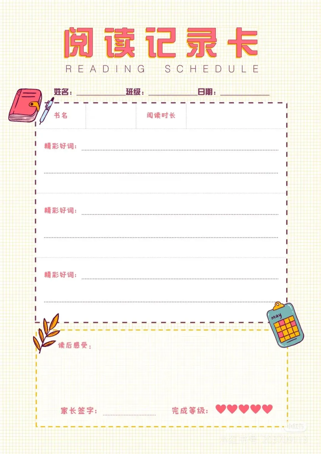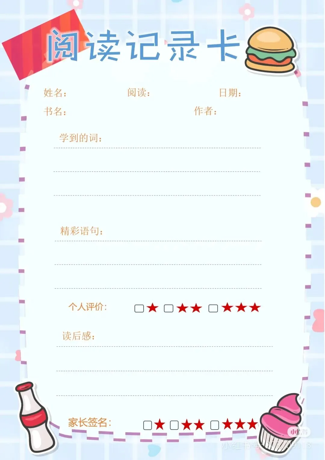阅读记录卡,读书笔记模板可打印