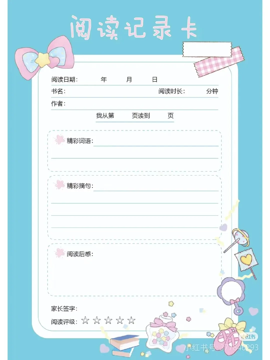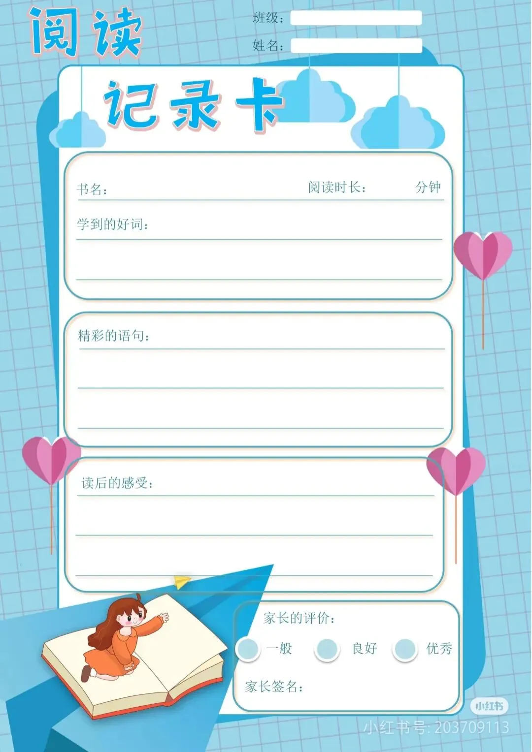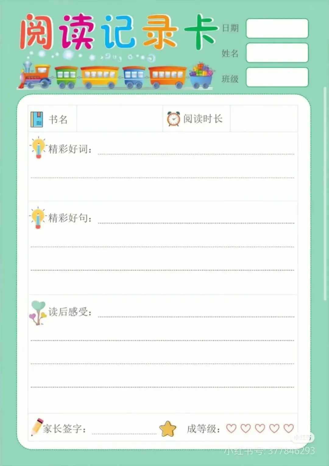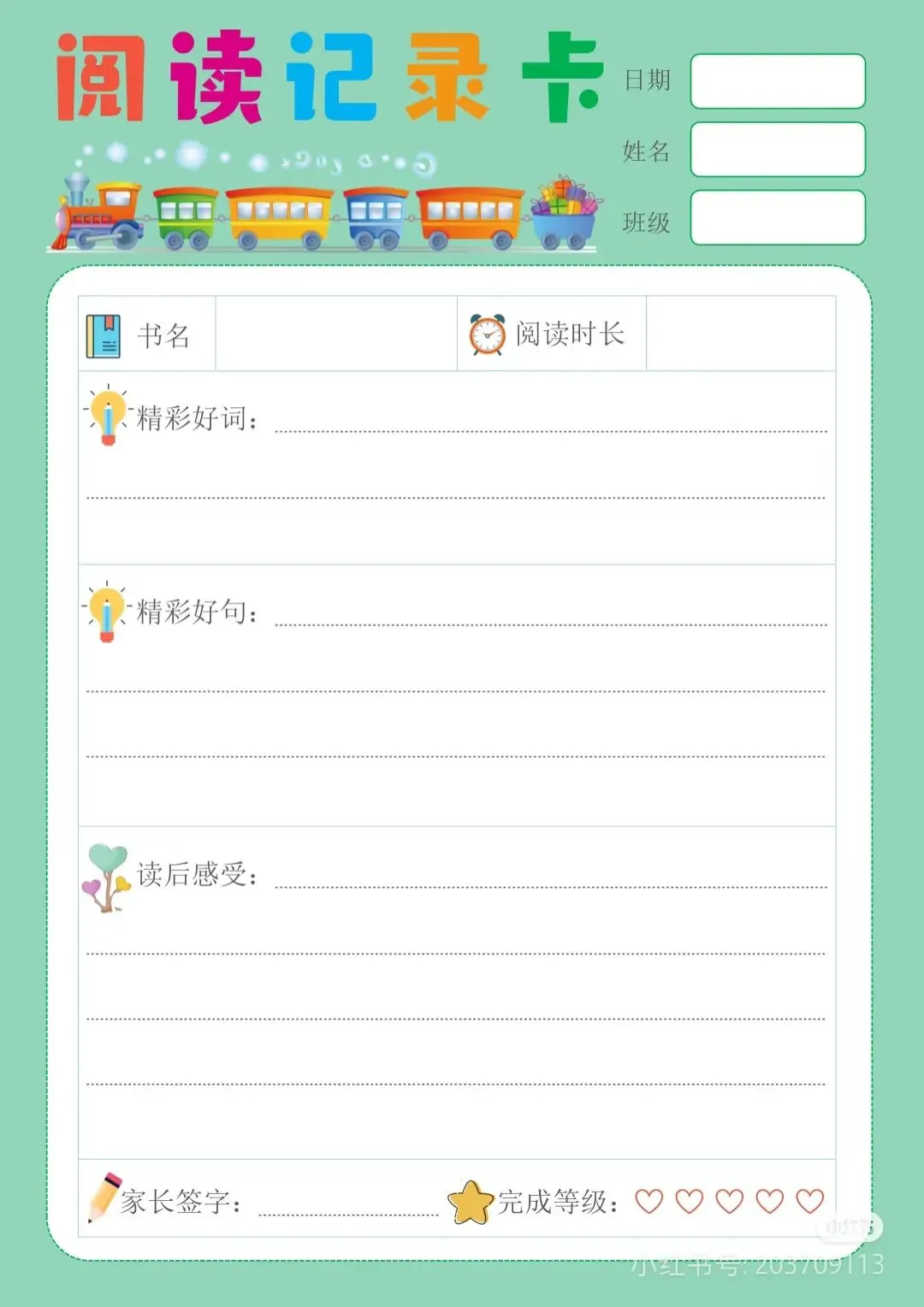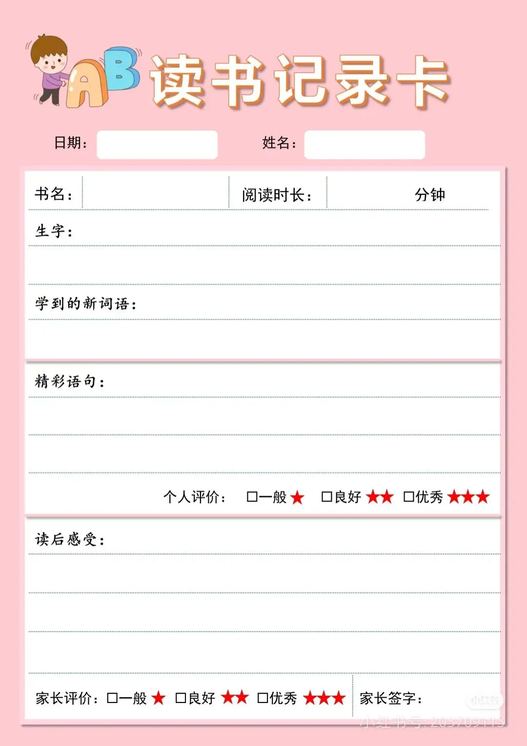 阅读记录卡,读书笔记模板可打印