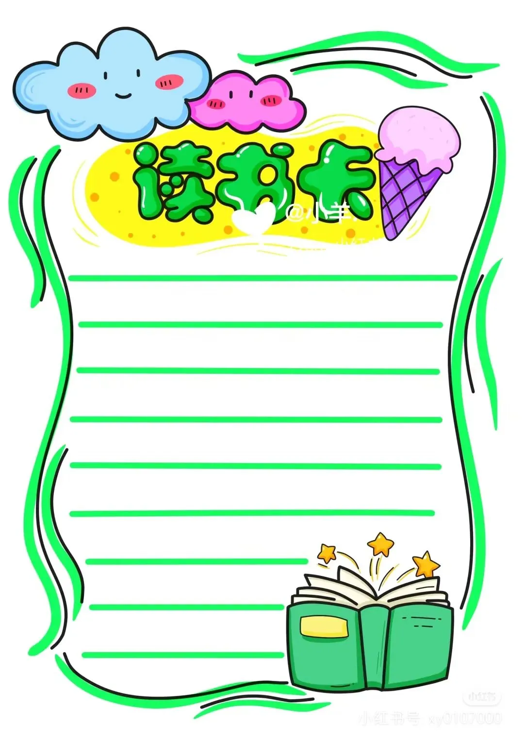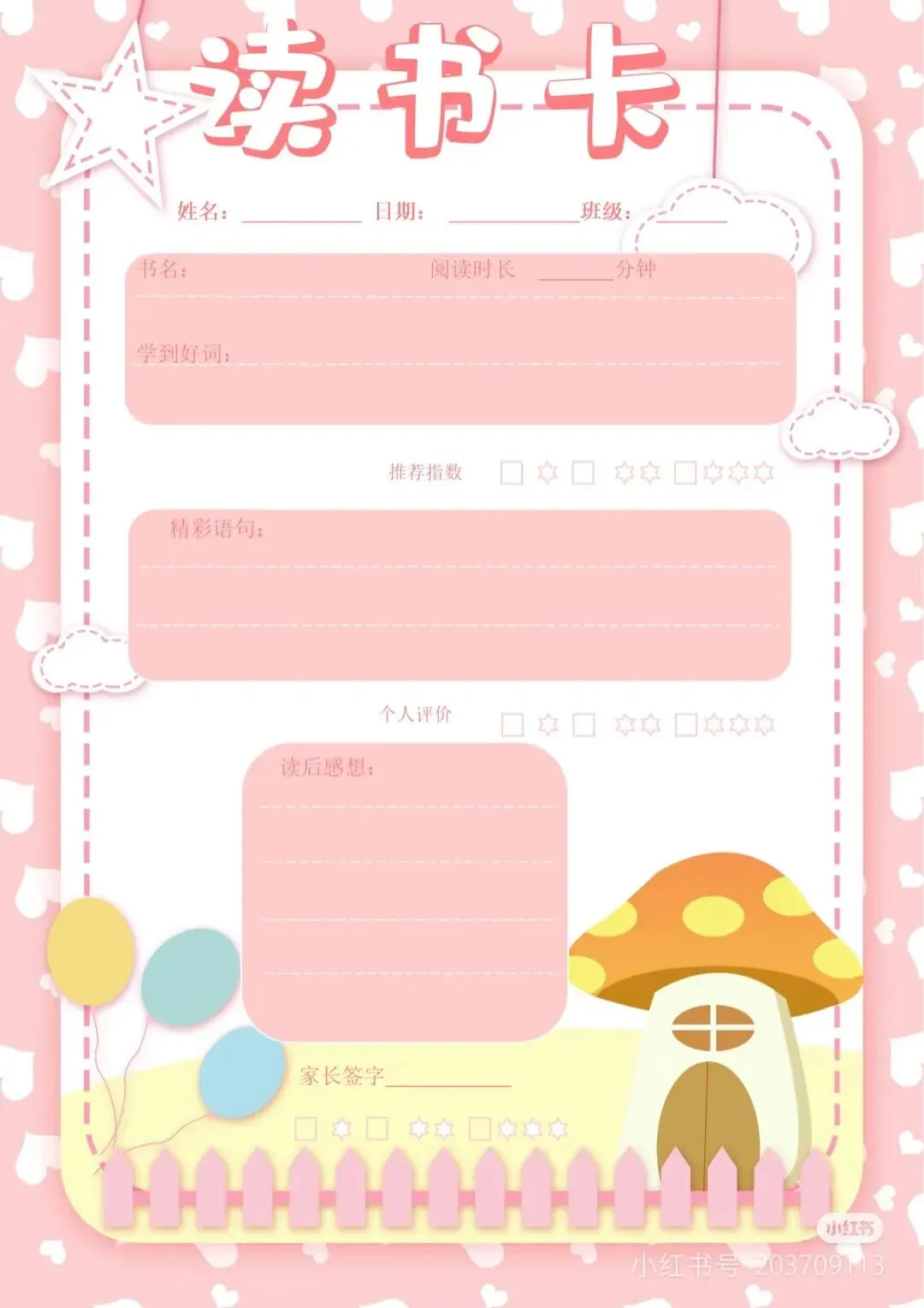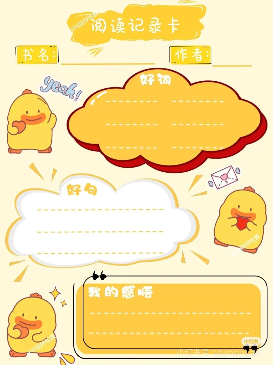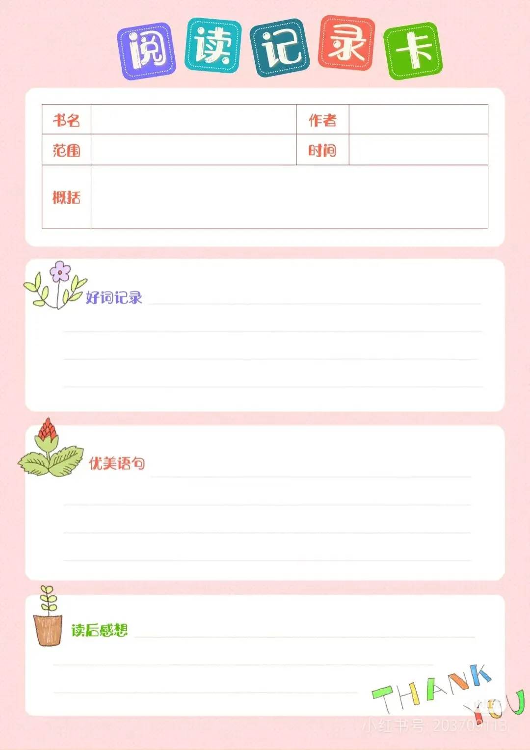 阅读记录卡,读书笔记模板可打印