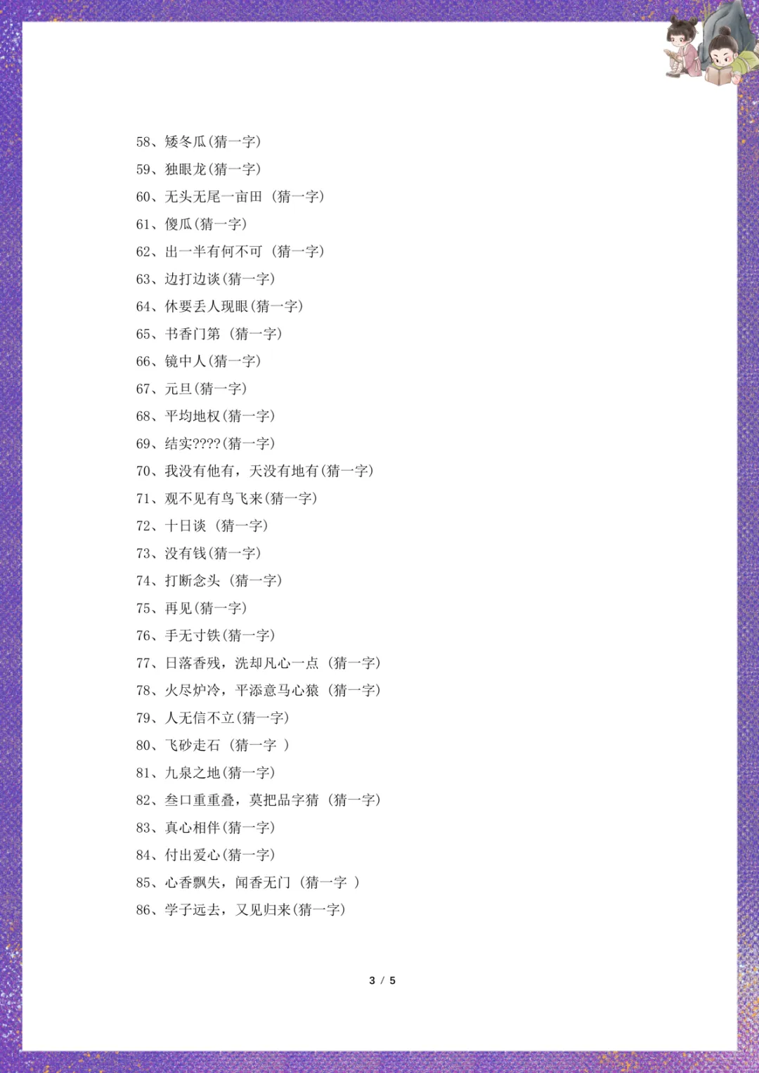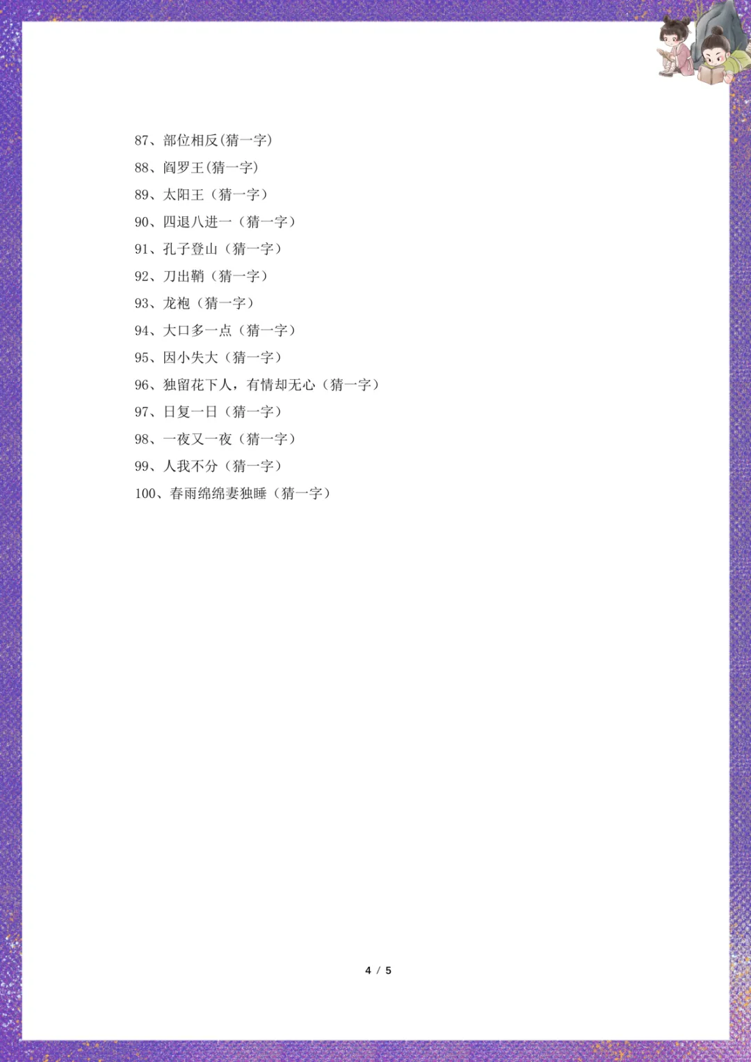 元宵节猜灯谜(含谜底)电子版可下载打印
