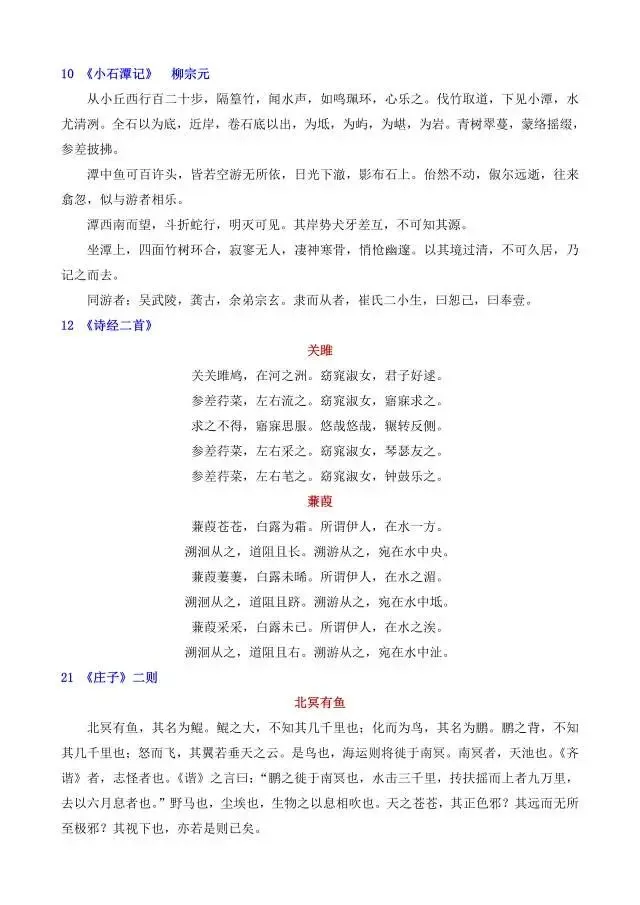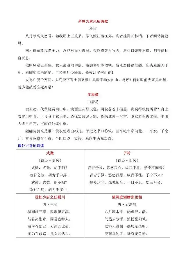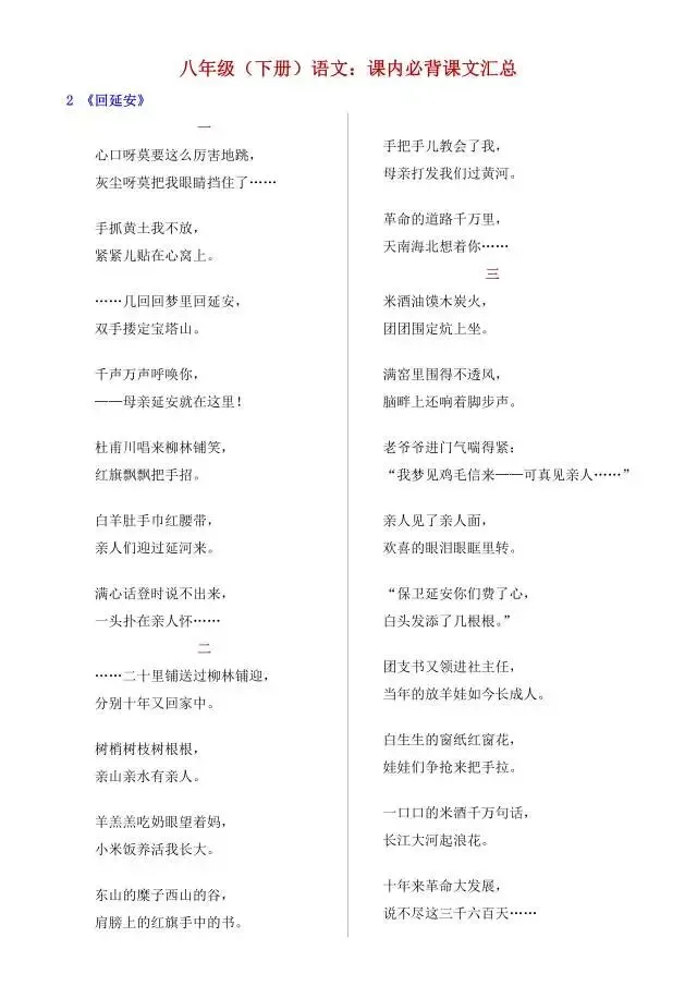 新八年级下册语文课内必背课文汇总(电子版可打印)