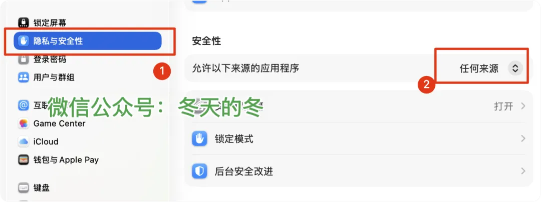 2、开启【任何来源】;