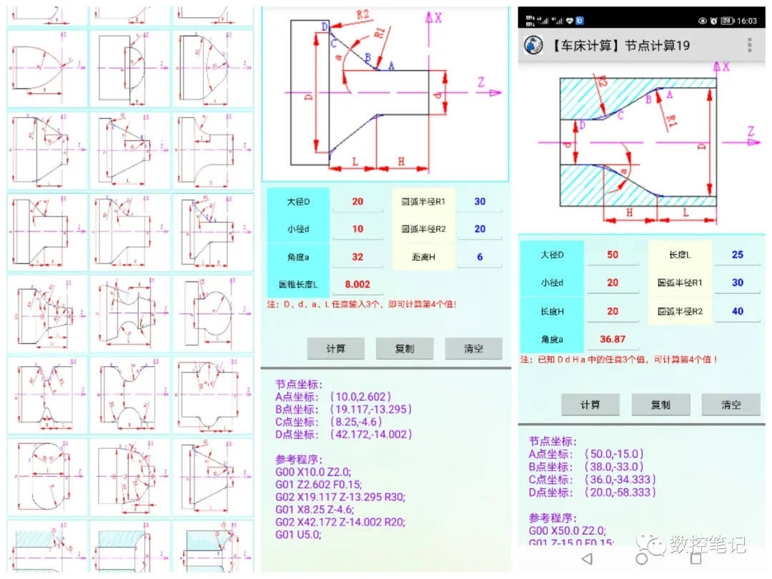 具有42项车床宏程序、37项节点计算、16项成型加工、18项切槽编程 等常用模板,具有角度计算、锥度计算、刀尖方位、普通螺纹等功能…