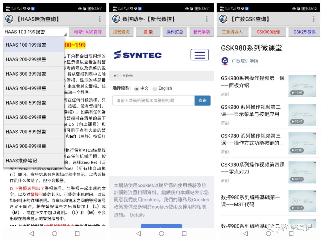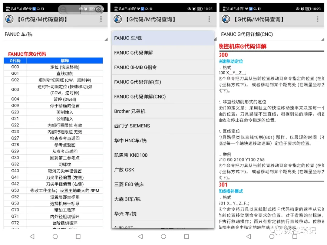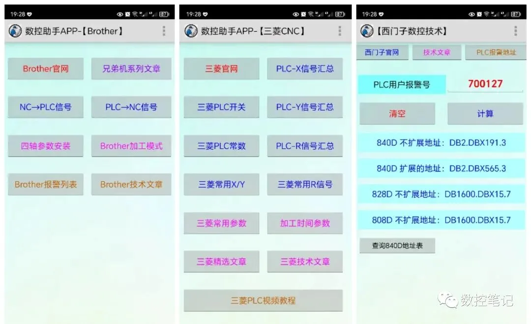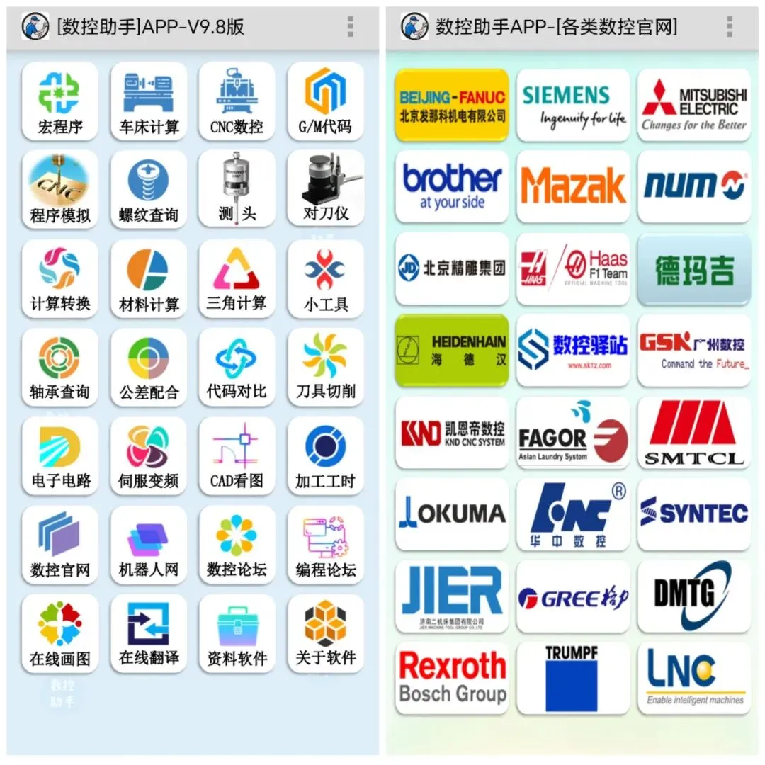 具有查询FANUC齿轮比计算、PMC及宏程序中文报警转码、伺服电机代码、PMC参数及信号地址、主轴换挡计算等;查询兄弟机PLC信号地址、四轴参数、加工模式等;查询三菱PLC开关、PLC常数、R地址信号、加工时间参数;查询 哈斯、新代、西门子、广数 数控系统常见故障报警等;