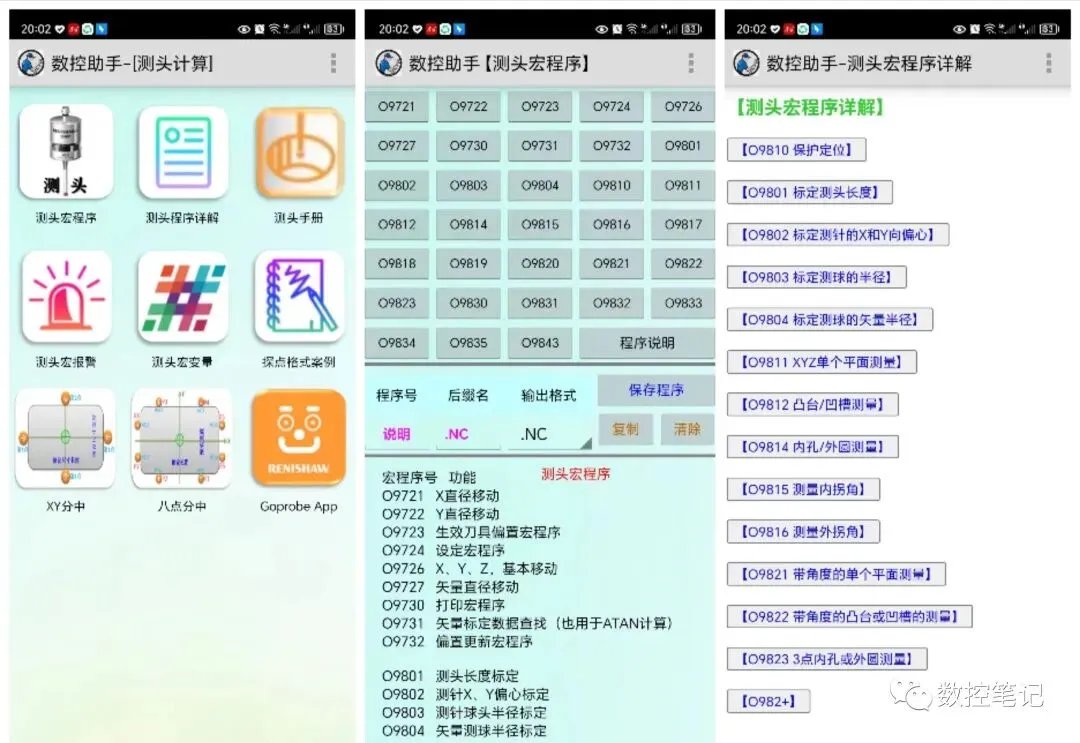 查询测头宏程序、测头程序详解各类测头手册、测头宏报警、测头宏变量、探点格式案例、XY分中、八点分中等功能、可下载雷尼绍专用APP软件。