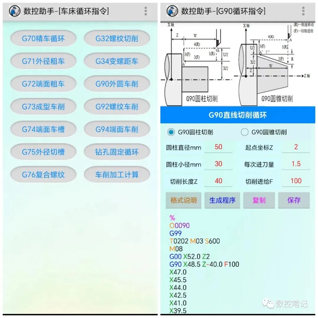 具有42项车床宏程序、37项节点计算、16项成型加工、18项切槽编程 等常用模板,具有角度计算、锥度计算、刀尖方位、普通螺纹等功能…