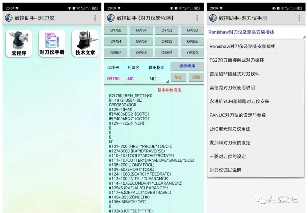 查询对刀仪宏程序、各类常见的对刀仪手册、查询对刀仪相关技术文章等功能。