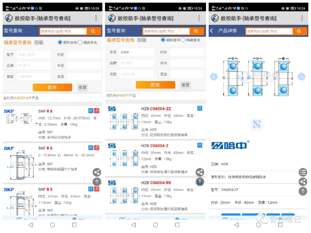 查询各类品牌的轴承、型号、尺寸规格等功能。