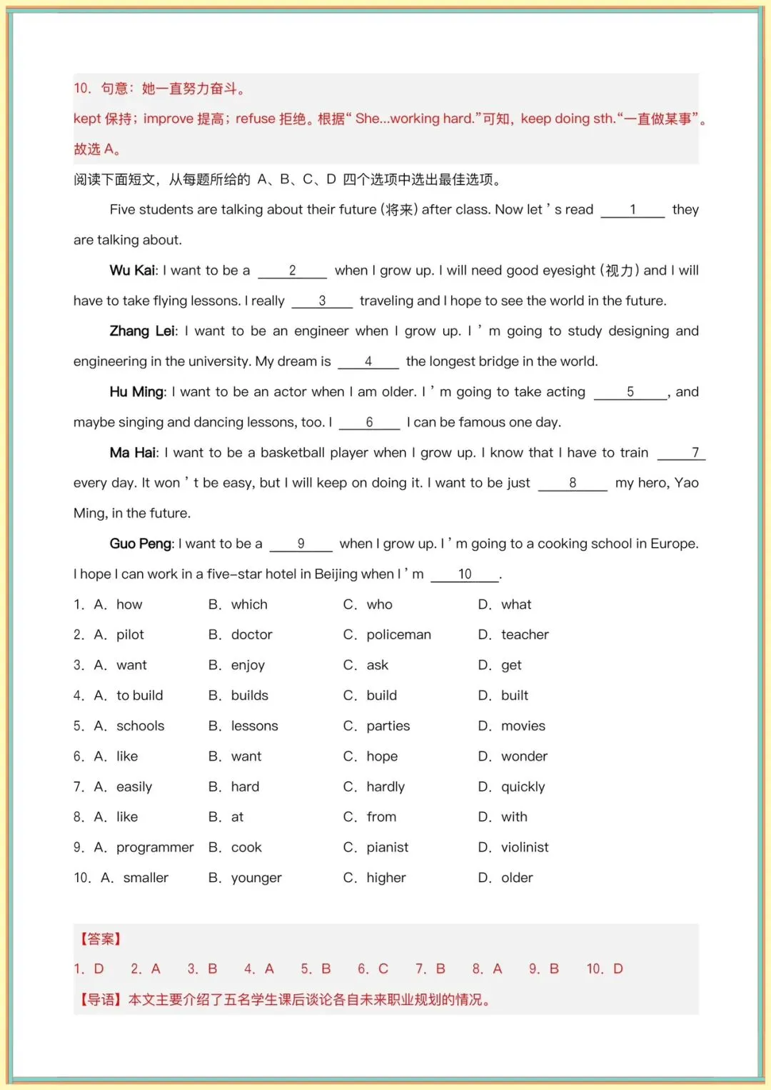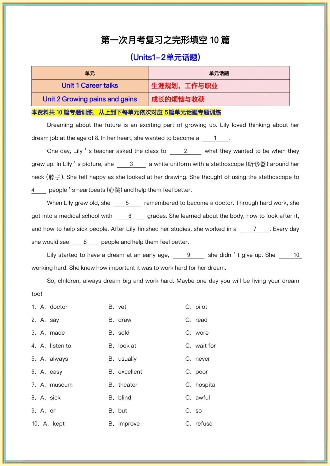 今日分享:月考复习|2026春新外研版八年级下册《英语》第一次月考复习之完形填空10篇(原卷版+解释版),有完整电子版可打印!