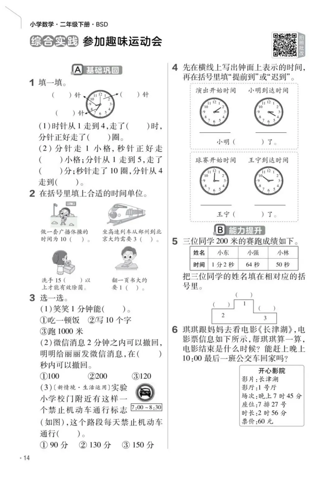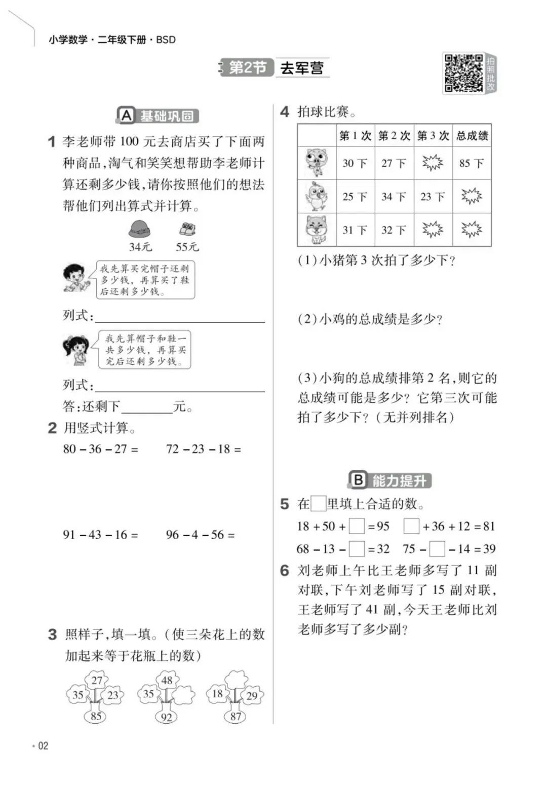 2026年春北师大版新小学二年级下册数学《同步课本一课一练》(基础练习含答案)-完整电子版可打印
