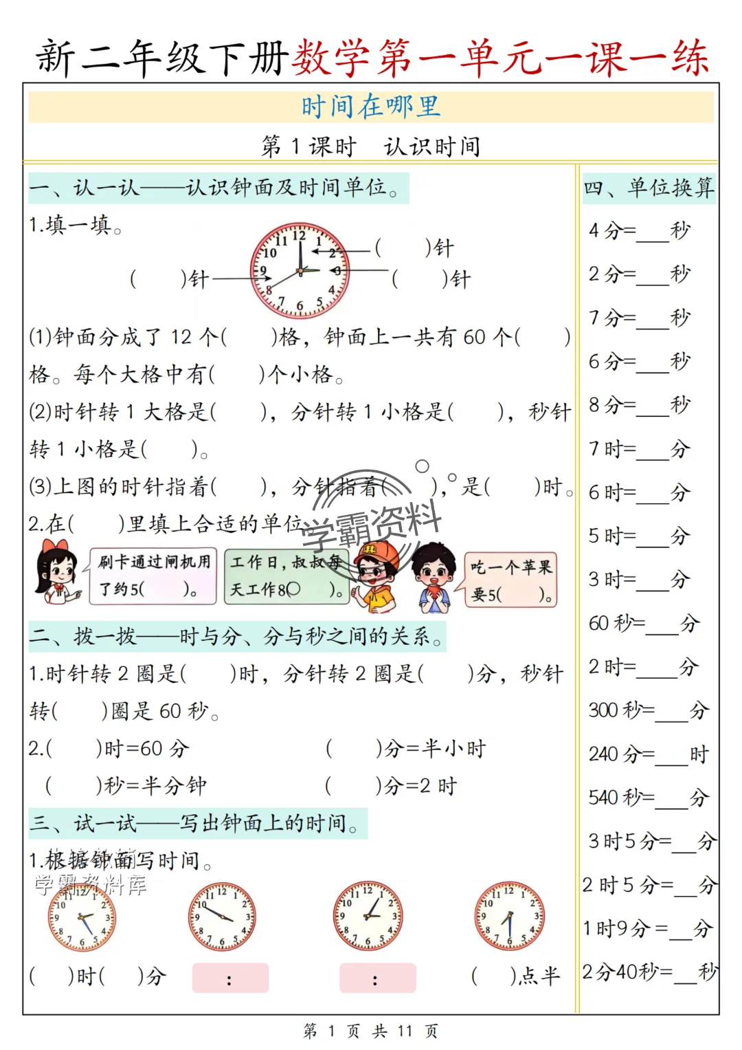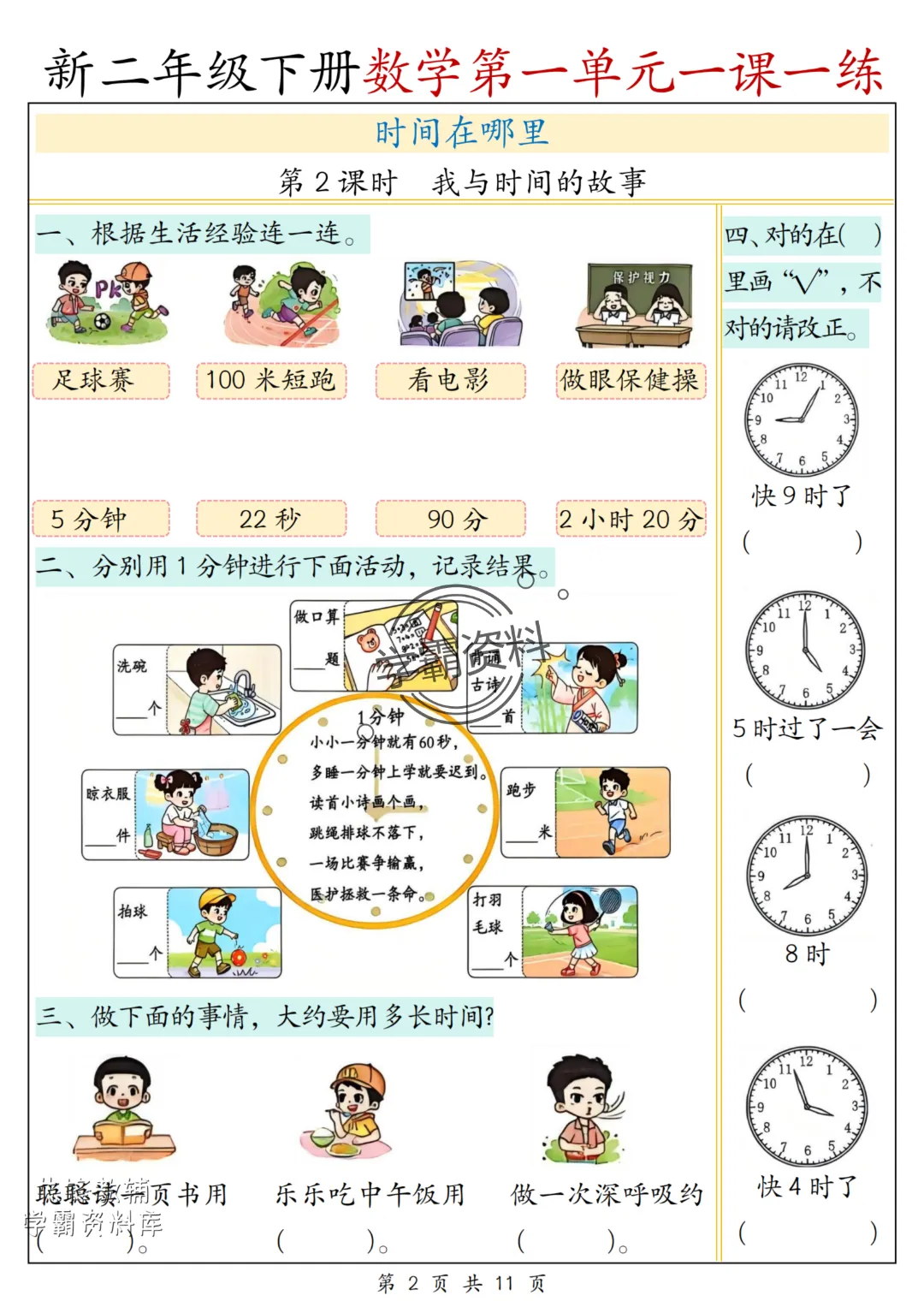 今日分享2026春新版《二年级下册数学一课一练》(人教版)电子版可打印。