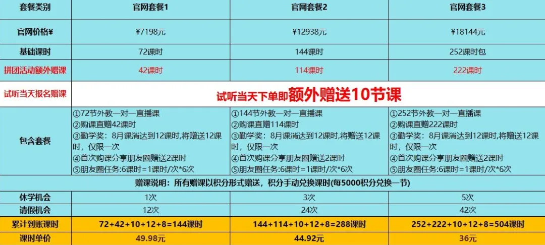 - 有效期:课包有效期相对较紧,需要精打细算。