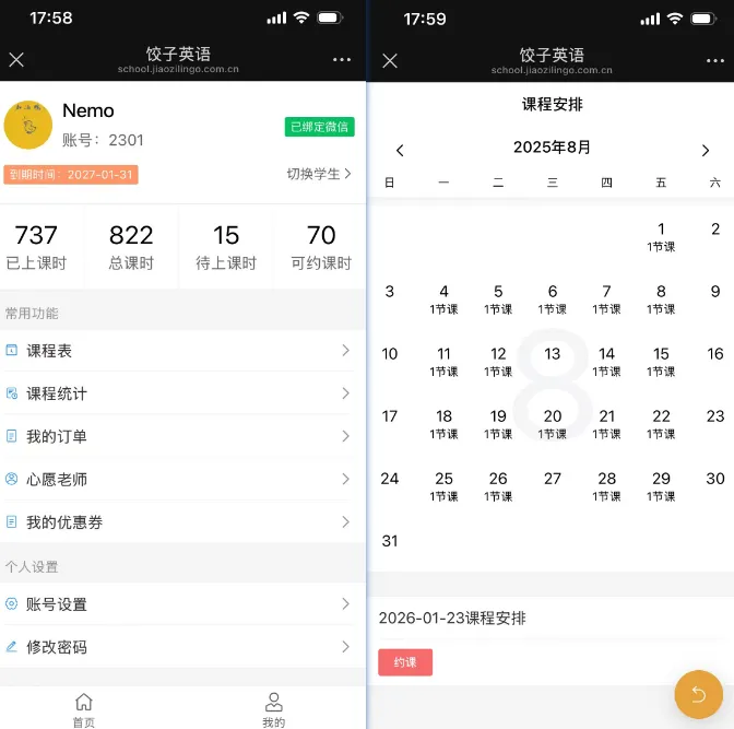 - 灵活性:请假只需提前3小时。最绝的是支持**“二胎账号共享”**,大宝二宝共用一个课包,完全没有浪费课时的担忧。