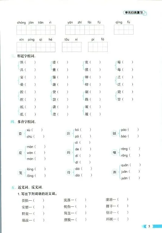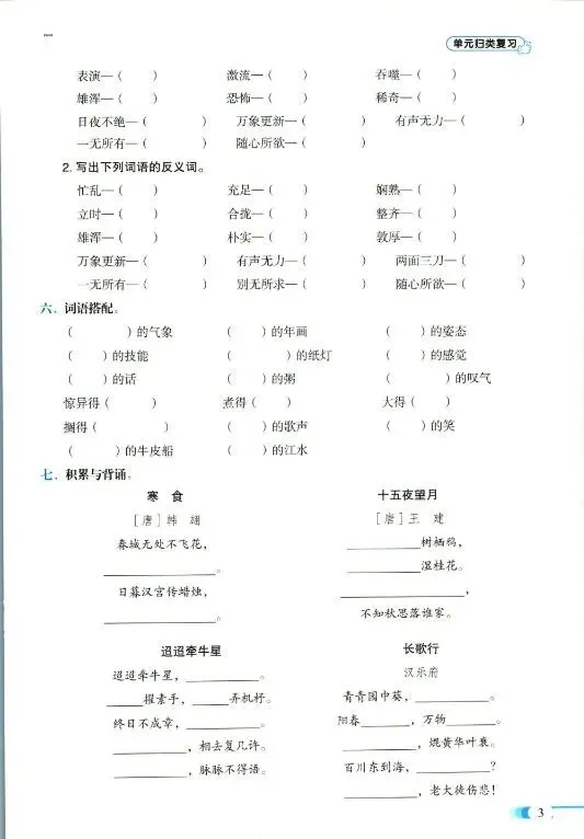 小学语文1-6年级下册《单元归类复习》|可下载打印
