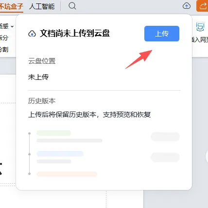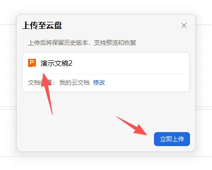 首先确保演示文稿要上传到云盘。打开WPS后观察右上角,找到上传按钮,并点击执行,上传并修改文档的名称。