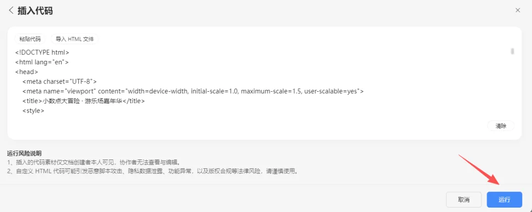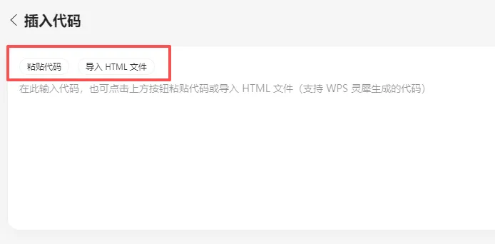 在插入代码对话框中,有两种方法可以使用,第一种方法是直接将代码粘贴到下方的窗口,第二种方法是将本地的Html文件导入。