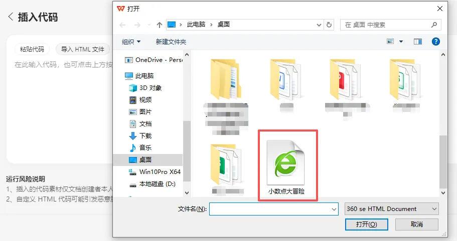 第二种方法首先要确保你的Html文件已经提前下载到了本地,然后在从本地找到文件即可导入。