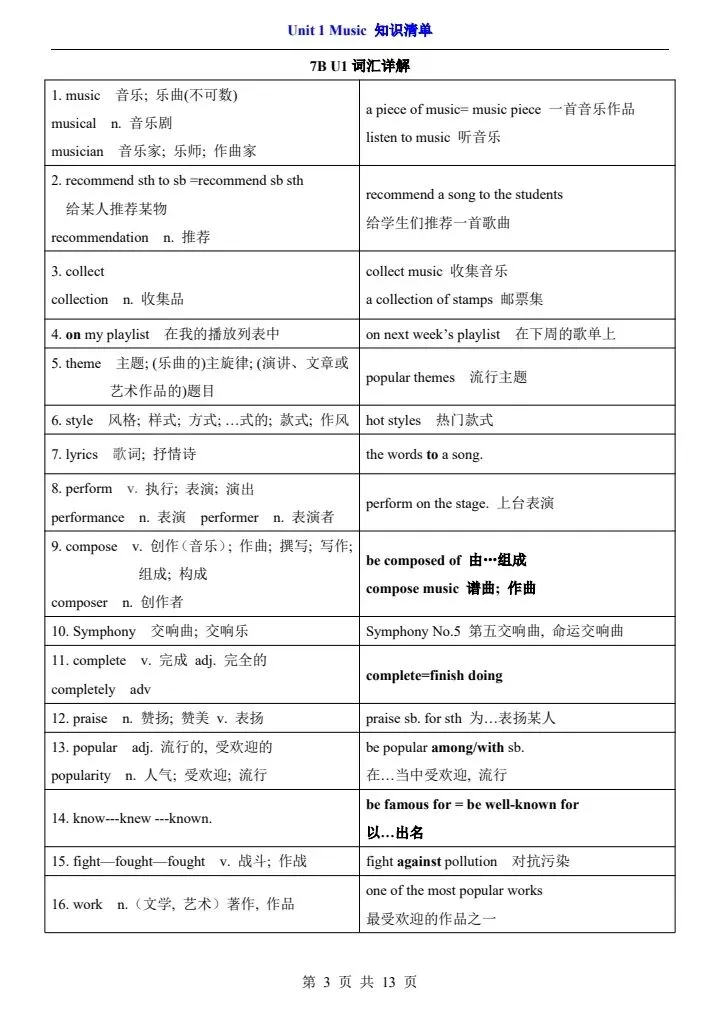 【沪教54版】七年级下册英语知识清单·词汇+语法汇总(完整电子版可打印)
