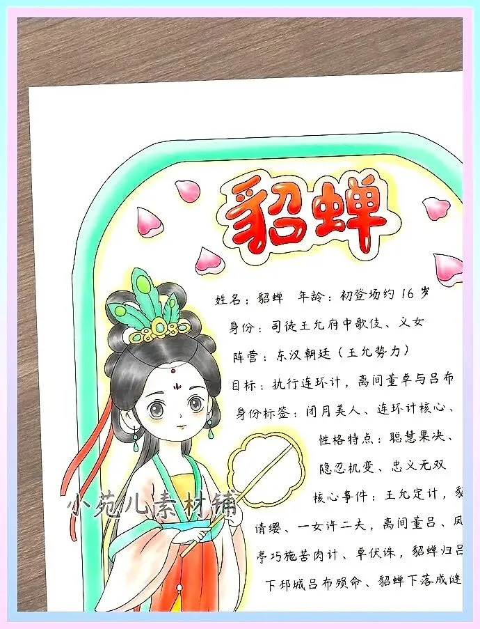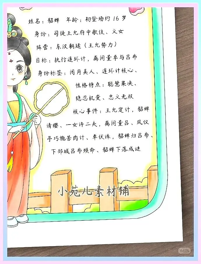 1036三国演义貂蝉人物卡有线稿可打印