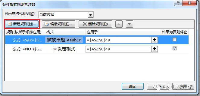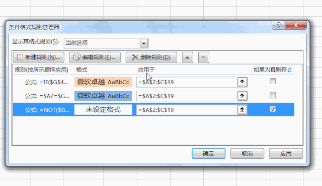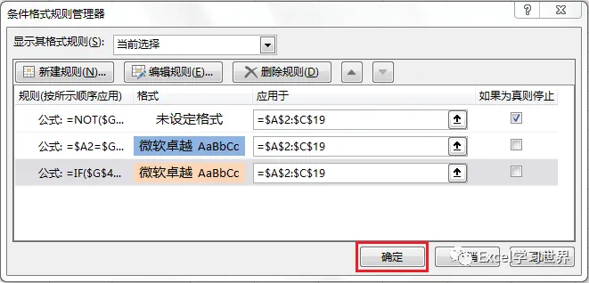 “如果为真则停止”:勾选了这个选项,表示当“=NOT($G$2)”公式结果为真时,即不勾选复选框时,就停止条件触发
