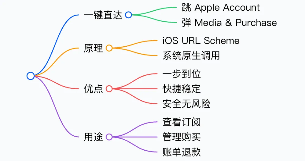 调用iOS系统的URL Scheme,直接跳转到Apple Account页面并触发Media & Purchase弹窗,原本几步的操作现在一步到位,效率拉满!