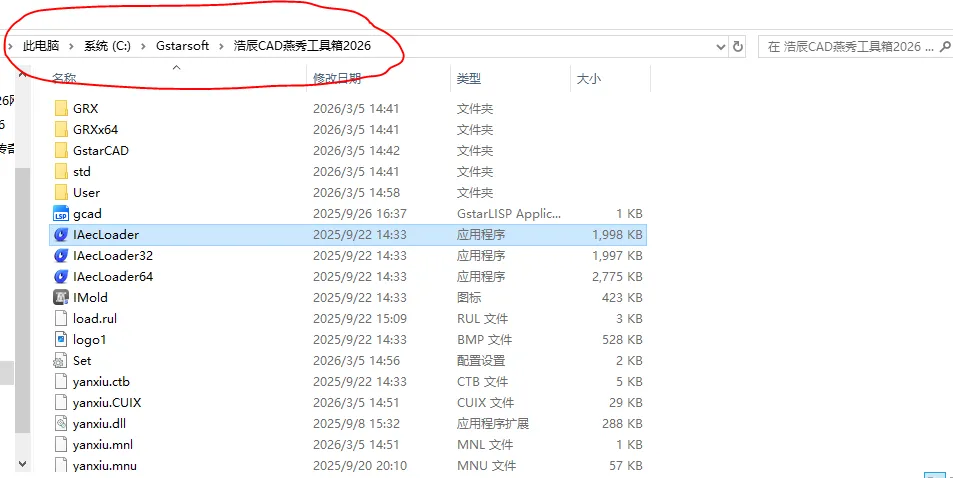例如我是默认安装的,我打开文件所在位置就是:C:\Gstarsoft\浩辰CAD燕秀工具箱2026。