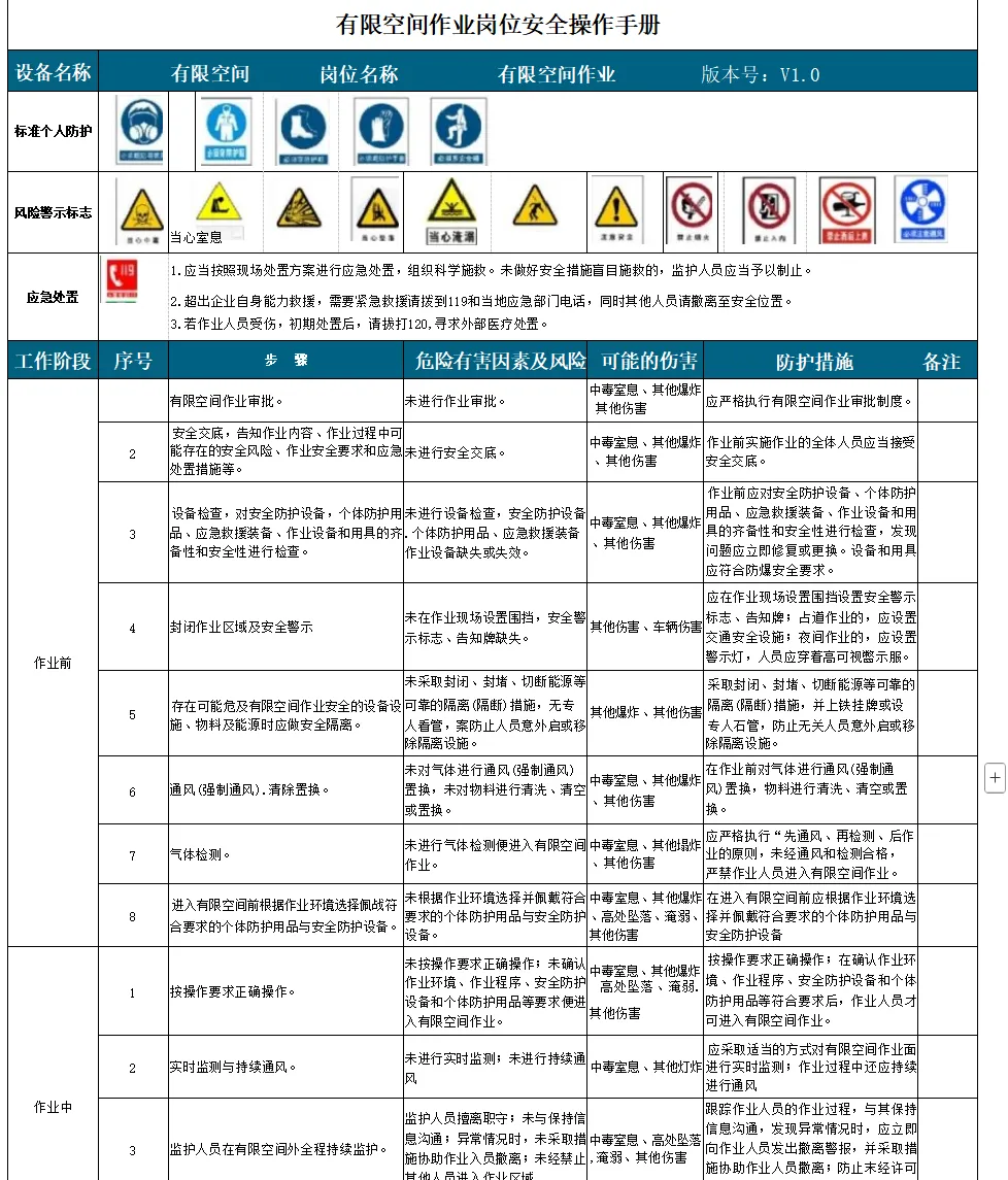 十七个岗位安全操作手册word版本(可下载)