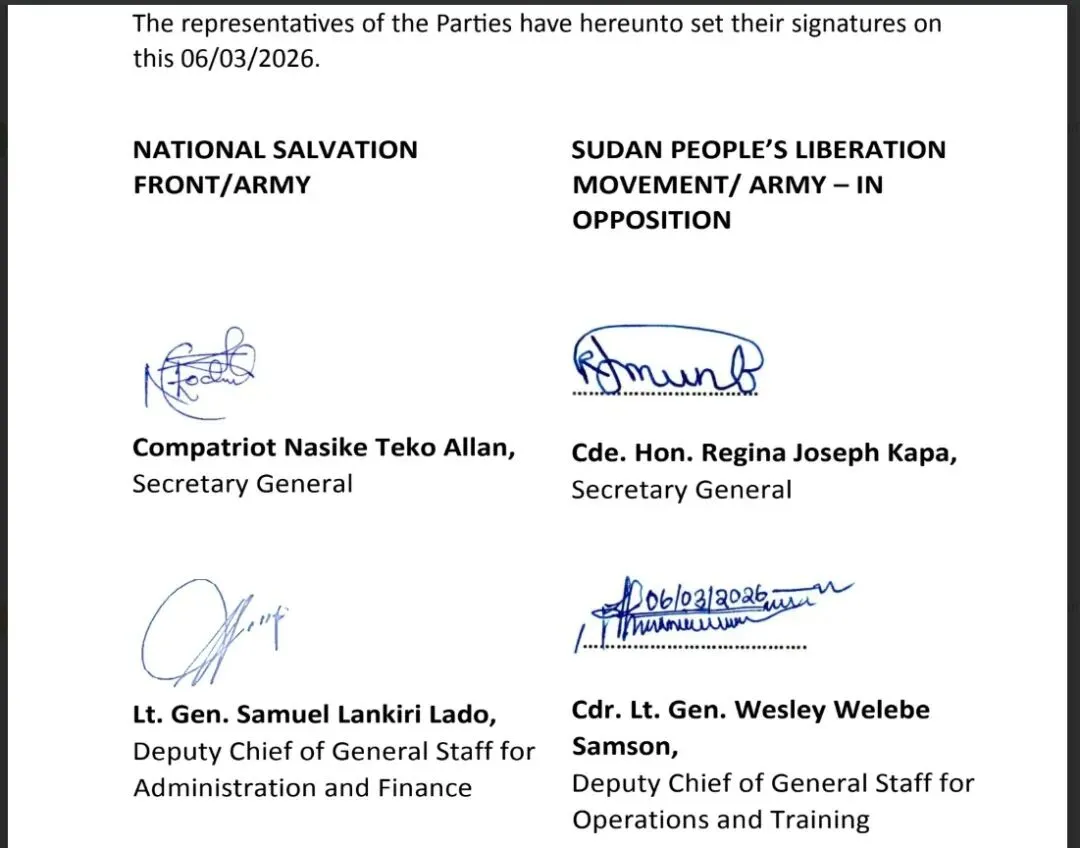 据看到的一份文件显示,苏丹人民解放运动/解放军—反对派(SPLM/A‑IO)与民族拯救阵线/军队(NAS)的代表于3月6日在双方磋商后签署了这份谅解备忘录。