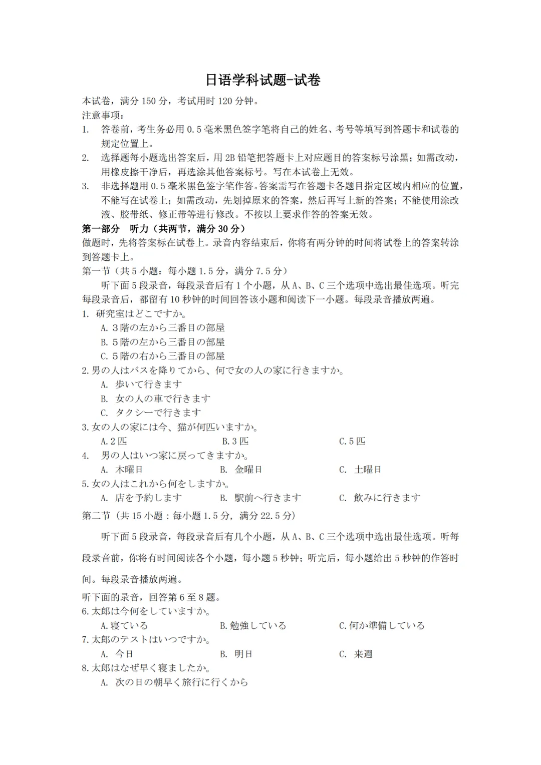 辽宁省名校联盟26届高三年级3月份联考日语试卷