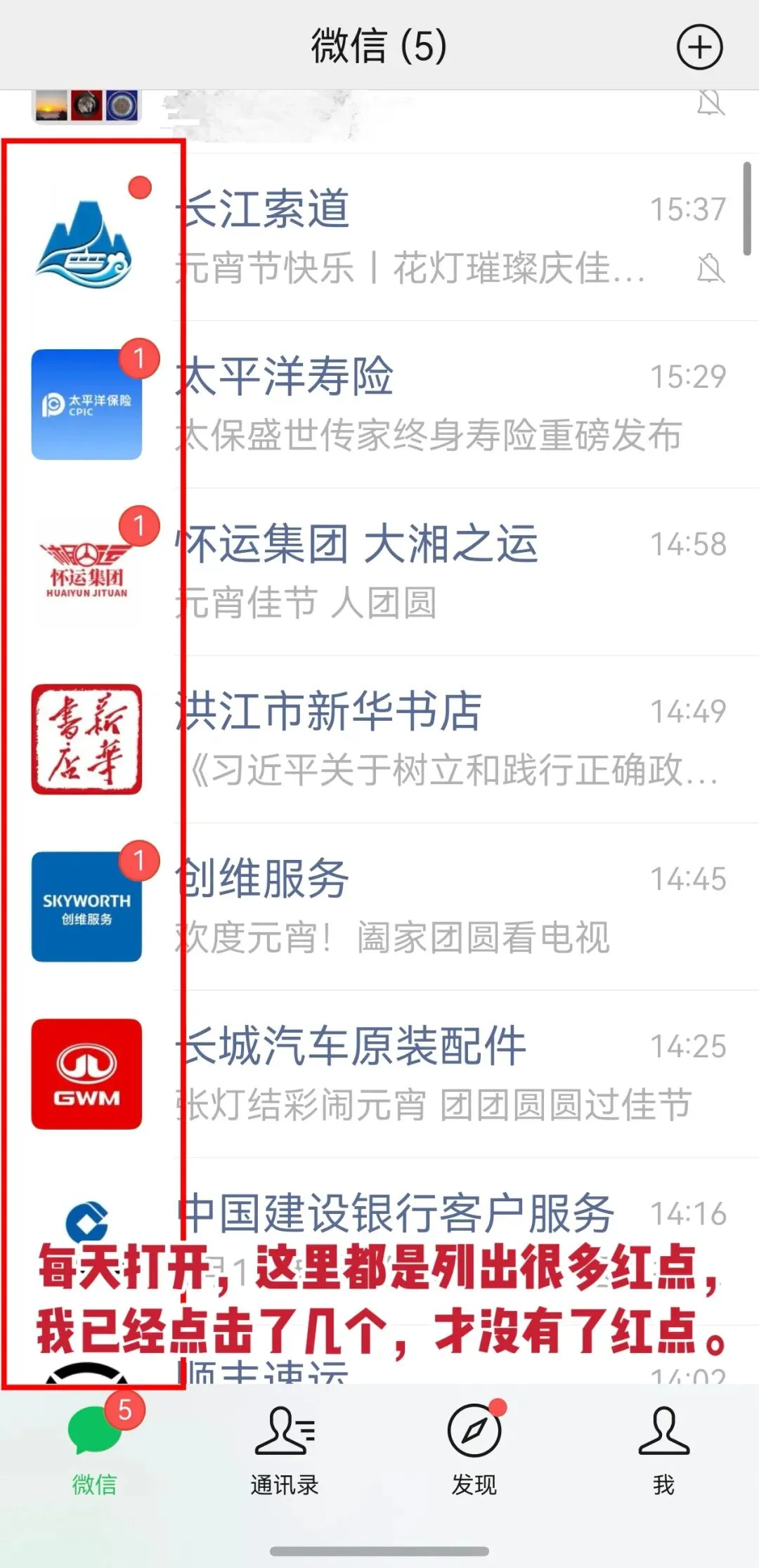 多年没有互动过的厂家服务号,全部被调出到聊天列表,带着红点不断提醒;原本可以安静归类,现在必须手动处理,看着十分心烦。