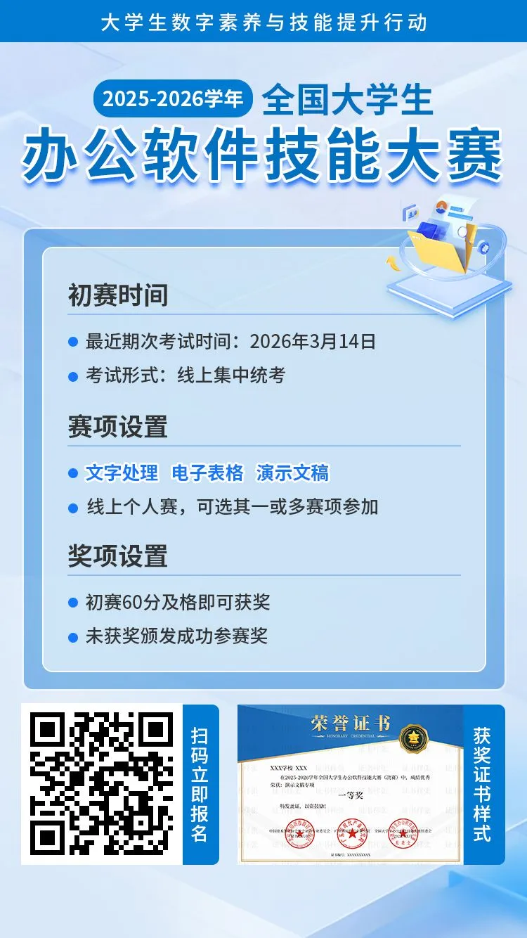 简单易上手,全国大学生办公软件技能大赛!