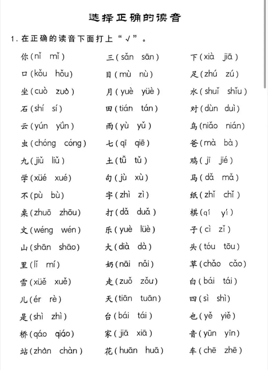 幼小衔接拼音强化训练读音选择专项(可打印)每天10分钟循序渐进,避免孩子产生厌烦情绪选出答案后要求孩子大声读出来,强化记忆