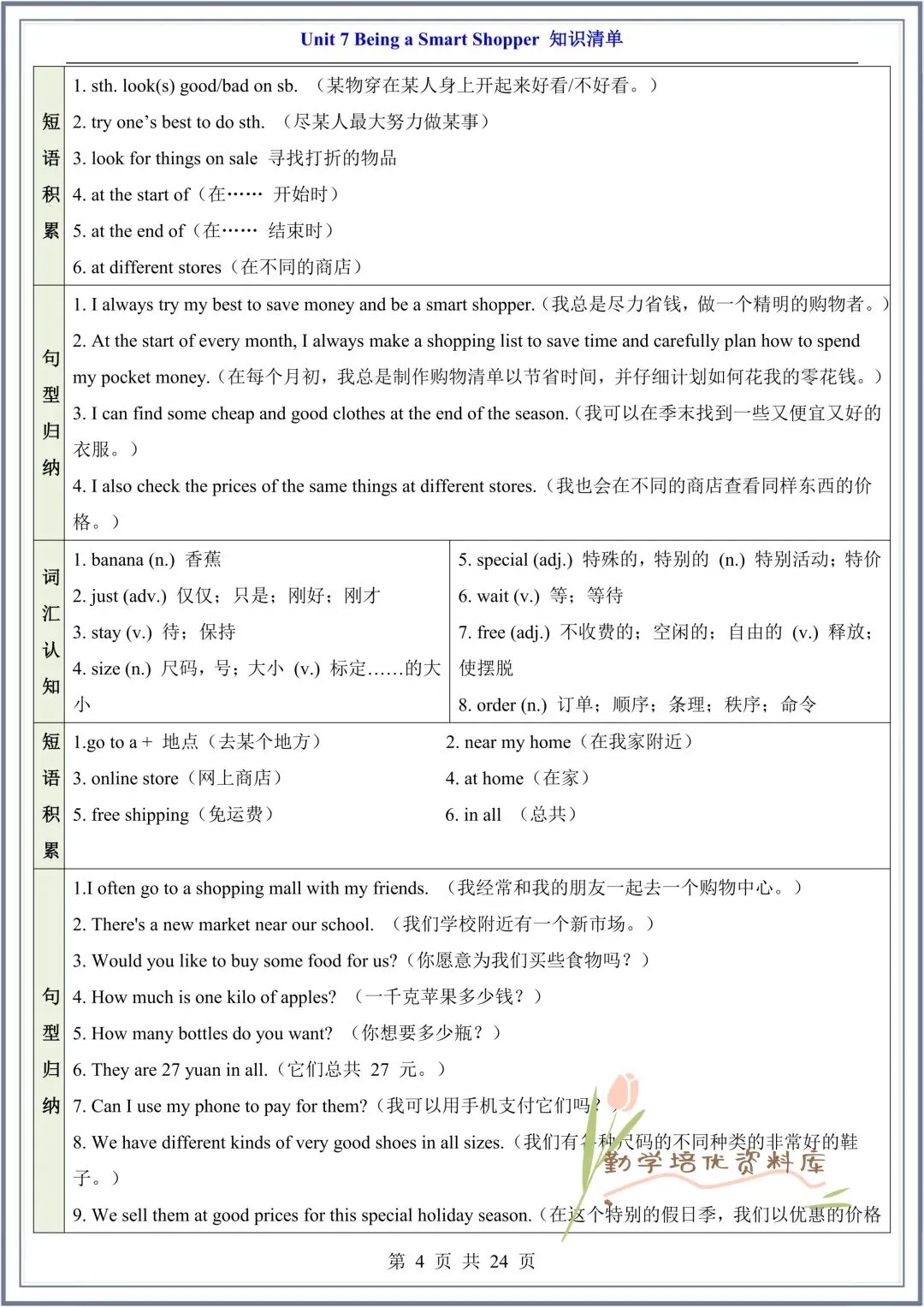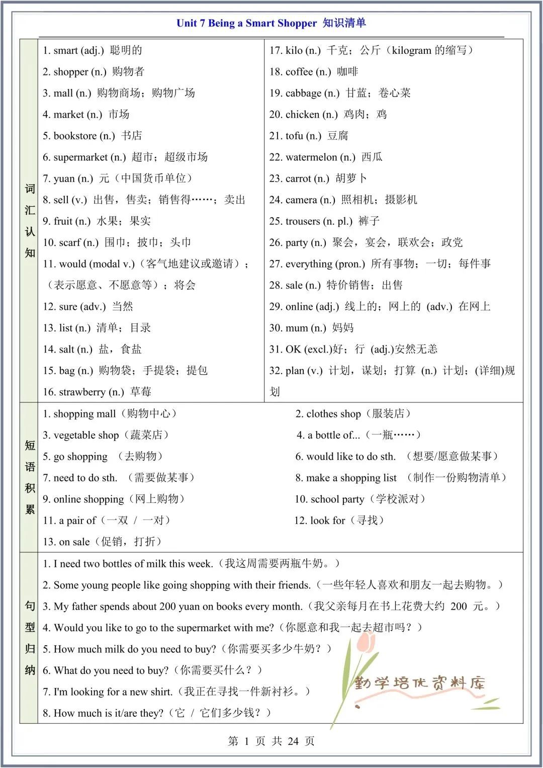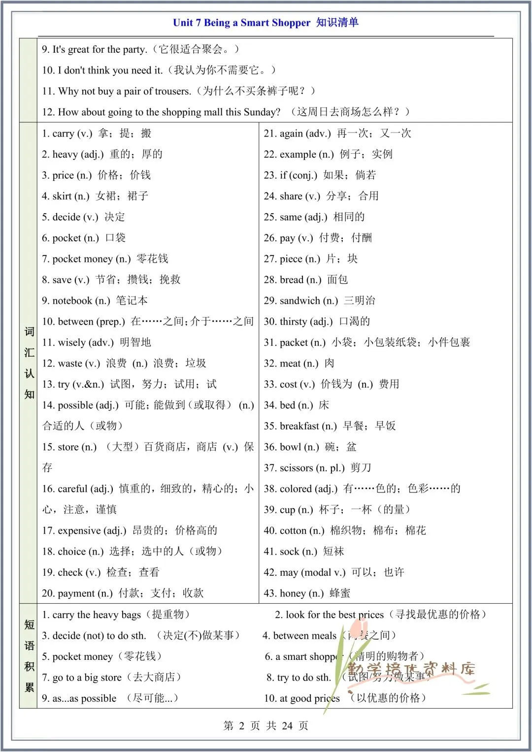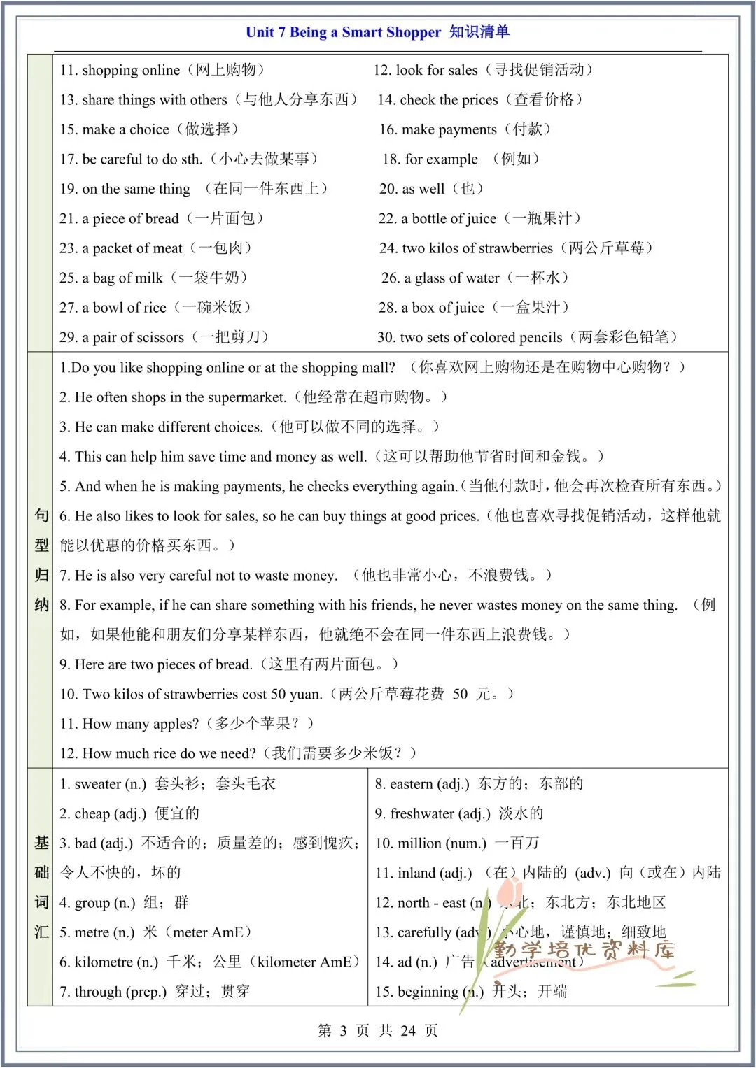 新版教材|2026春(仁爱版)七年级下册英语单元核心必背重点知识清单(背诵版+默写版),可下载打印!