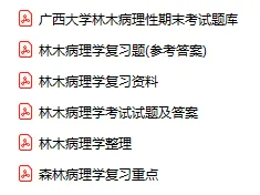 今天分享的资料是「0890-林木病理学」电子版+学习笔记+知识点总结+期末考试重点+复习资料+习题集及答案+名词解释+历年真题试卷及答案+题库及答案+复习重点+思考题及参考答案+公式总结+考试重点基础题+知识总结+高清PDF可打印+免费分享!