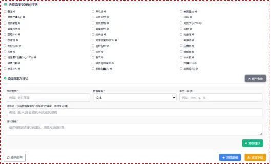 之后,点点自己要加入的农艺性状,如果预设中没有,就自己自定义添加,