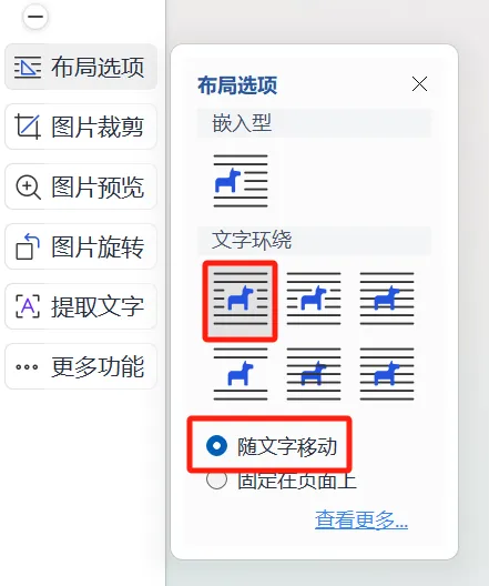 图片在WPS不能移动怎么办 当图片在WPS中word里不能居中时,更改文字环绕类型可以实现移动图片 点击图片旁边 布局选项——文字环绕类型可以是周围型,勾选随文字移动。然后拖动图片,就可以调整图片位置居中了。