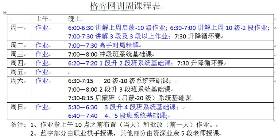 (5)大课班内容:每日练习、基础课程(格弈网校课程)、训练比赛(格弈网校分组循环升降赛);