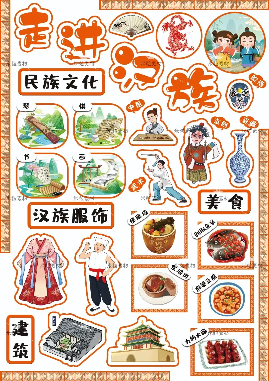 幼儿园汉族文化墙主题环创【走进汉族】可打印