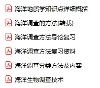 今天分享的资料是「0926-海洋调查方法」电子版+学习笔记+知识点总结+期末考试重点+复习资料+习题集及答案+名词解释+历年真题试卷及答案+题库及答案+复习重点+思考题及参考答案+公式总结+考试重点基础题+知识总结+高清PDF可打印+免费分享!