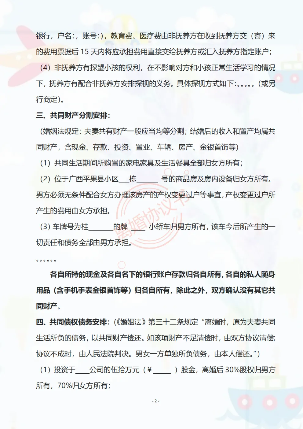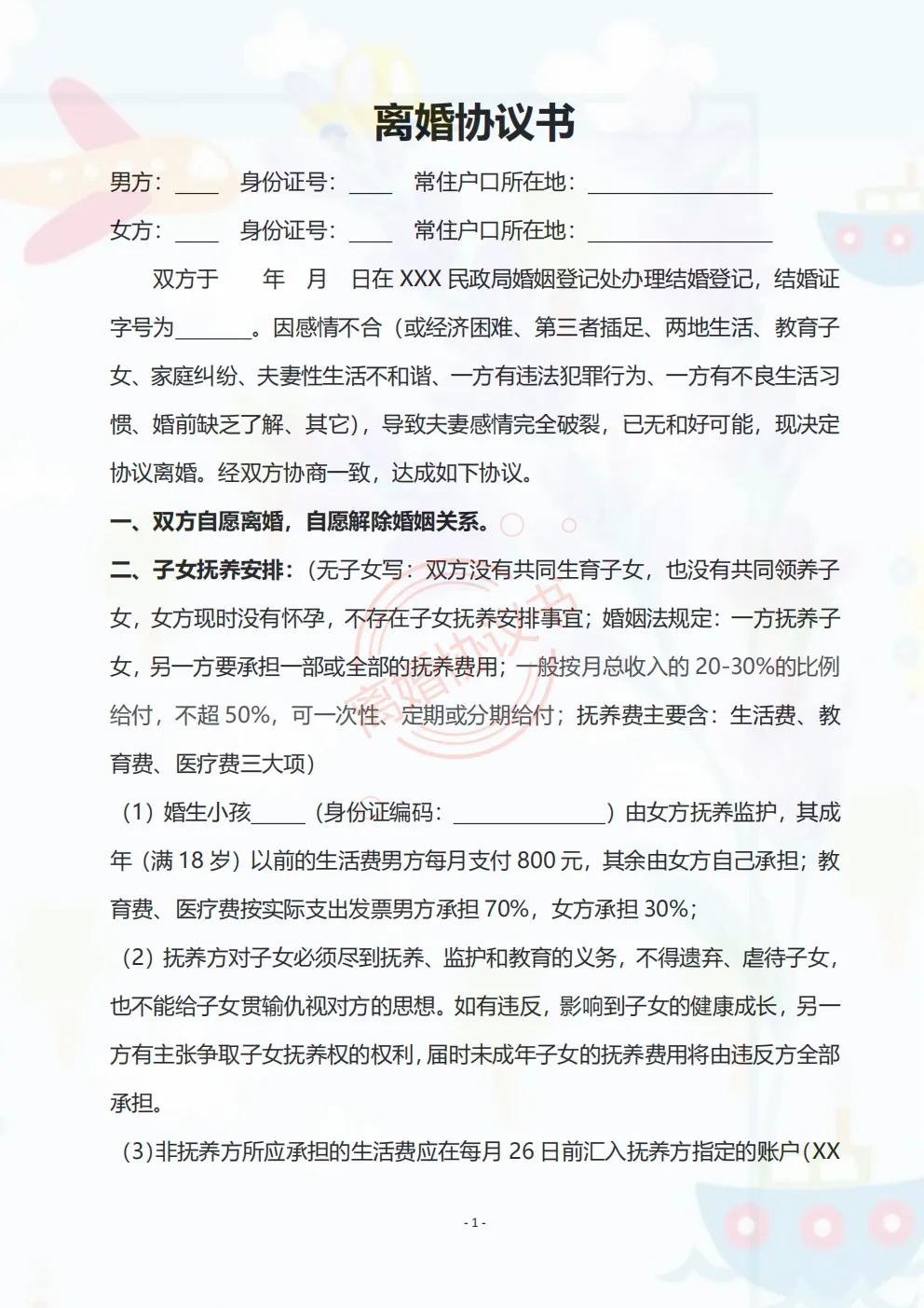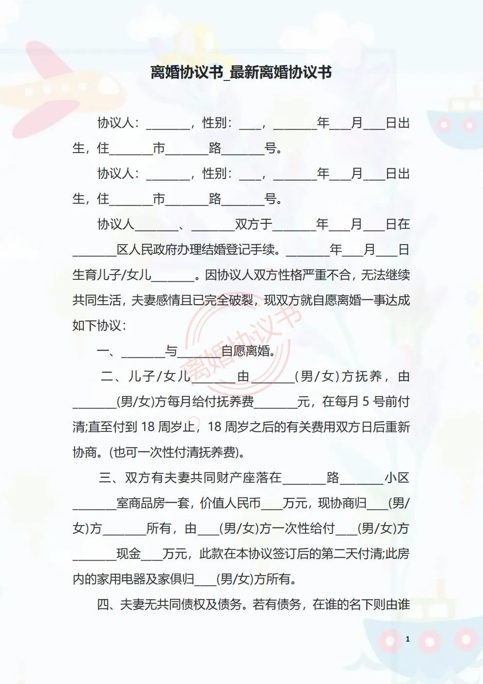 【2026离婚协议模板】2026年最新版《离婚协议书》电子版可下载 可打印可修改 65种情况全免费下载! (有/无财产.有/无债务.有1/2/3子女)