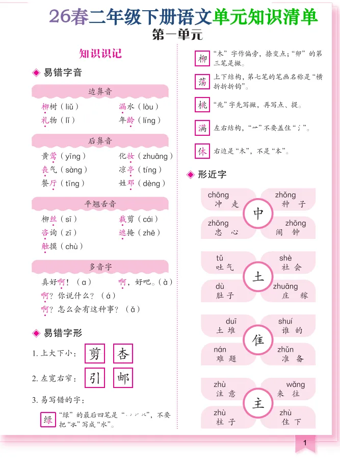 26春二年级(下)语文单元知识清单,电子版可打印 点击上方关注领取更多学习资源 26春二年级(下)语文单元知识清单,电子版可下载,同步教材每课内容。需要的家长抓紧打印出来,让孩子用起来。 (温馨提示:文末有完整电子版领取方式) 免费领取电版 关注公众号:“博学小课堂” 文章文末:点赞+再看 发送关键字:260308 说明 教辅在精不在多 ,如果觉得资料好,孩子需要正常使用 ,建议购买正版图书本公众号分享教辅资料,是为了给大家介绍、展示教辅资料的内容和特点,推荐大家购买正版教辅。 为了更好地展示资料的情况,我们可能会用到一些资料的截图、官方的样书,或者网络上公开的电子资料,如果权利人认为这些展示可能会侵害到您的权利,请直接告知我们,我们会立刻删除。