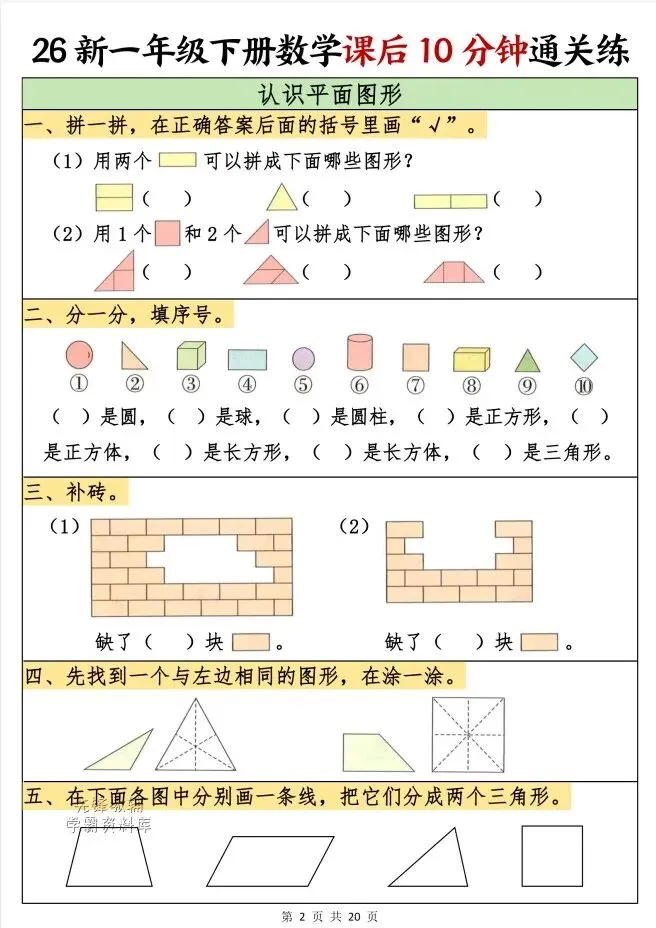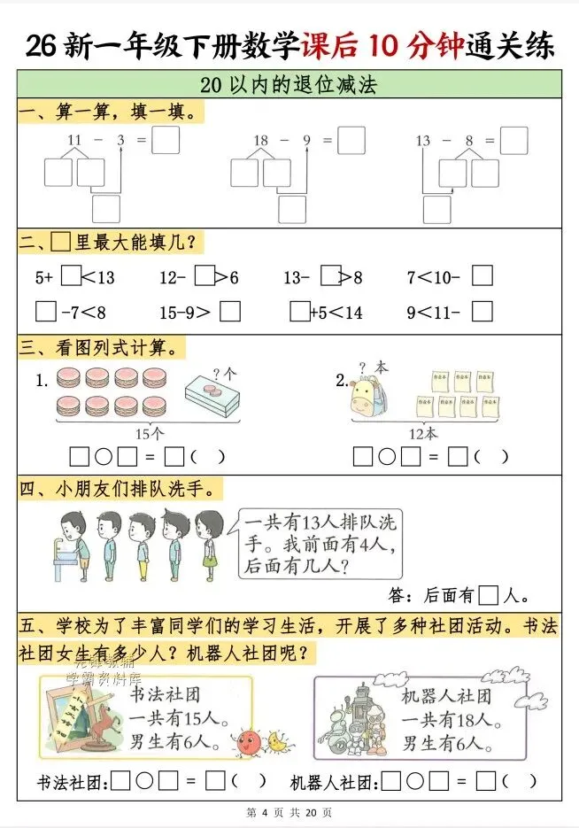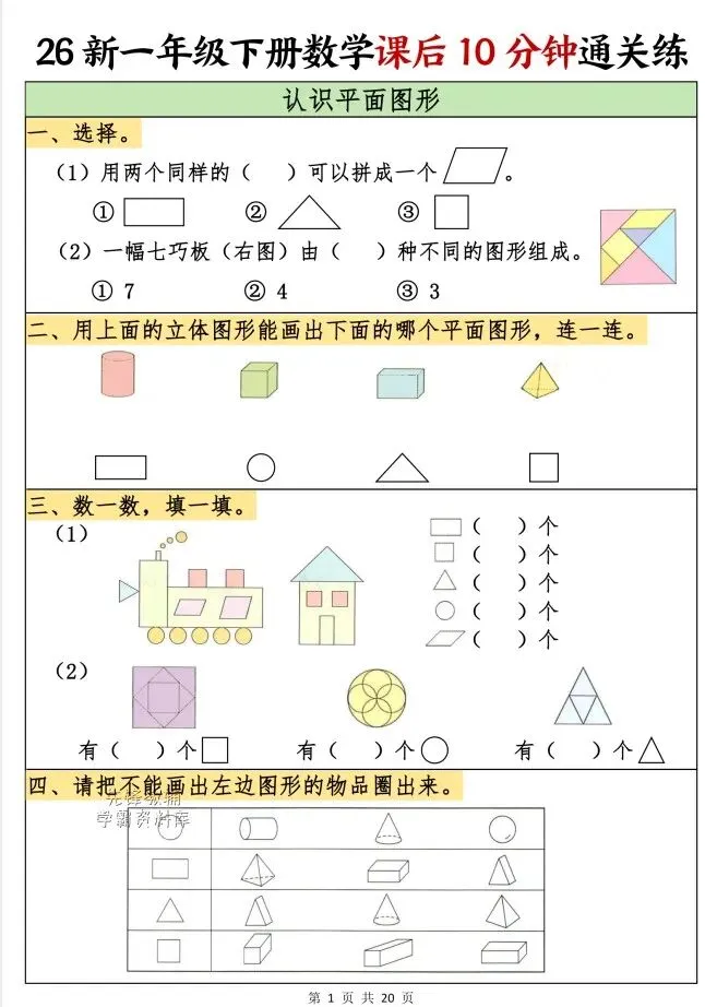 今天给大家整理了26春一年级数学下册课后10分钟通关练,转发给朋友或班级群,受益更多人,帮助孩子学习!
