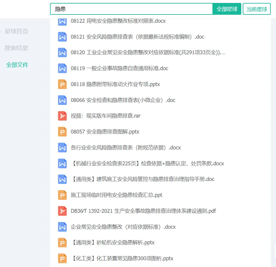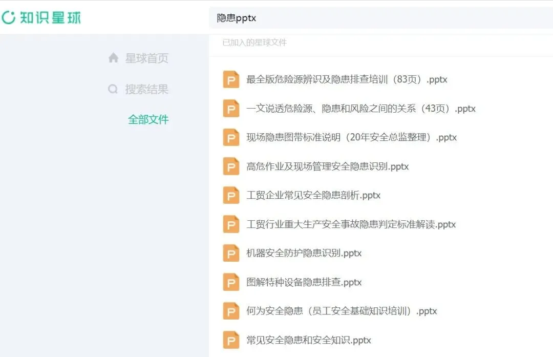 (2)找安全PPT:输入关键词如“隐患pptx”: